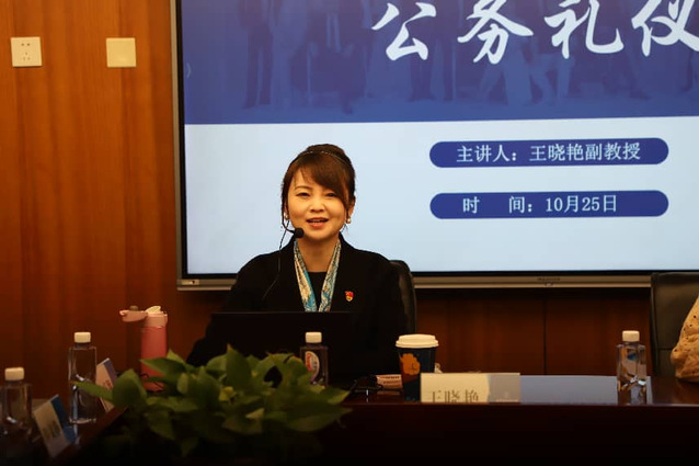 为进一步加强机关青年业务骨干队伍建设、提升青年干部职业素养与服务水平,12月25日下午,机关第二届青年业务骨干培训班举办《公务礼仪》主题讲座。上海市团校、上海市青年管理干部学院副教授、资深形象礼仪培训师王晓艳应邀主讲,全体学员参加学习。讲座由本次培训班教务员、机关党委组织员孔参主持。王晓艳副教授表示公务礼仪不仅是个人修养的外在体现,更是维护学校形象、提升工作效能、促进人际和谐的重要保障。结合机关工作实际,她围绕服饰礼仪、体态礼仪和社交礼仪等三大板块展开系统讲解,将礼仪规范转化为具体可感的行为准则,帮助学员准确把握公务礼仪的关键要点。本次主题讲座是我校机关青年业务骨干培训班的重要组成部分,旨在通过系统化、场景化的礼仪教育,帮助青年干部夯实职业素养根基、提升综合服务能力。