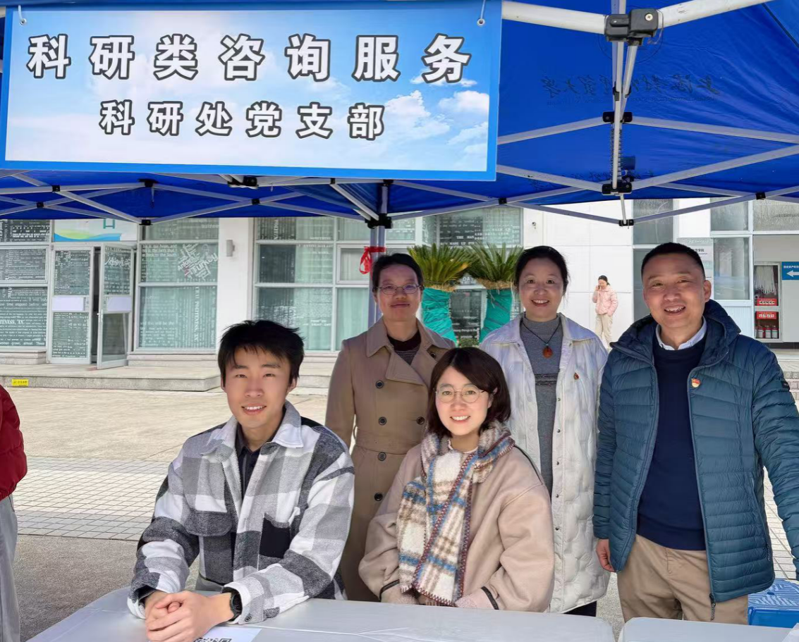 为传承和弘扬雷锋精神,切实为科研人员办实事、解难题,2026年3月5日学雷锋服务日当天,科研处党支部在党群服务中心前设立“践行雷锋精神,服务科研创新”主题咨询摊位,开展科研类专项咨询服务。