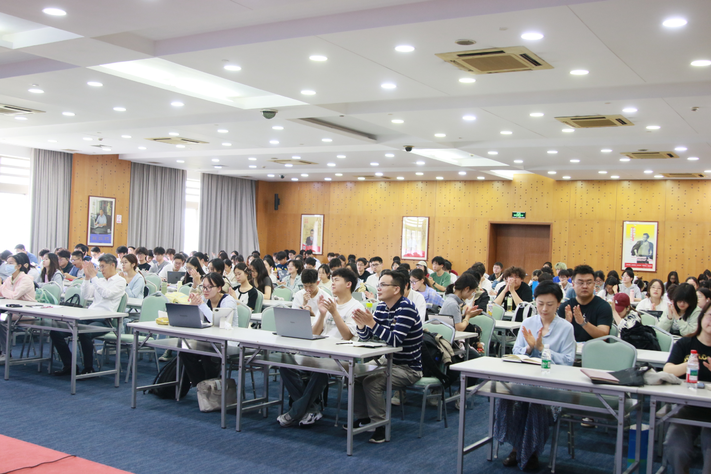 在这场大思政课中,童会长以历史为引,从党史中汲取当前企业管理的经验方法,提炼出应对当下贸易战的做法。他用数据及案例阐述了美国历史中用“关税和税率”工具来治理国家经济与调节国际经济关系的种种举措,分析了在当前关税战中中国企业遭遇的“四大挑战”考验以及关税战将导致世界经济产生的五大变局,让师生对美国发起全球关税战有了清晰的认识。他从世界全球化发展历程、新中国成立后企业全球化历程和党的二十届三中全会就完善高水平对外开放体制机制作出系统部署后的全球化进程三个维度介绍了未来全球化的新发展方向。在此基础上,他指出大变局下学生要认清形势,要学会应用政治经济学指导复杂变局形势下的企业实践,学会用世界规则、语言、工具,加快企业出海步伐,学会战略经营,战役突破,战术优化,实现中国式“跨国经营”,要把握中国式“走出去”发展的关键路径和本质来应对变局实现成功。