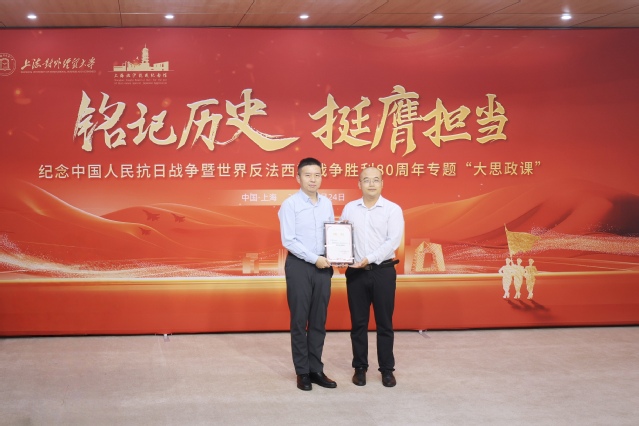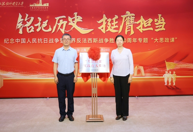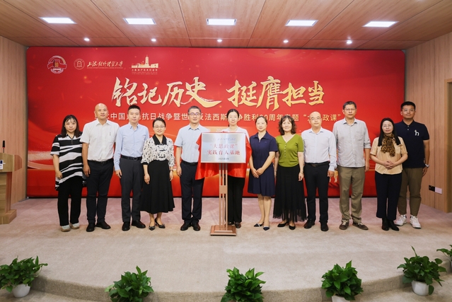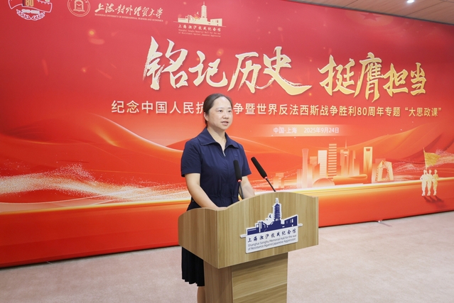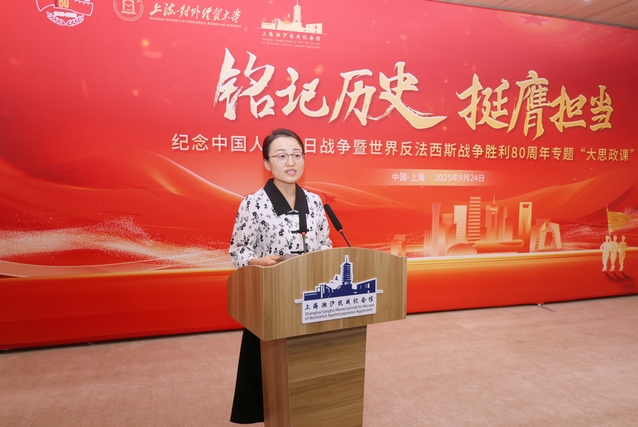 9月24日,上海对外经贸大学与上海淞沪抗战纪念馆围绕“铭记历史,挺膺担当”主题,联合举办纪念中国人民抗日战争暨世界反法西斯战争胜利80周年专题“大思政课”,把红色资源融入思政育人实践,大中小学生同上一堂生动的思政课。上海对外经贸大学党委副书记、副校长沈艺,宝山区委宣传部副部长、区委网信办主任刘德龙,上经贸大党委常委、宣传部长郭茜,宝山区文化和旅游局副局长姜芬芬,上海淞沪抗战纪念馆馆长孔祥俊,上经贸大马克思主义学院党委书记刘海泉、党委副书记张帅出席活动,上海对外经贸大学及其附属松江实验教育集团的师生代表共同参与,在历史现场接受深刻的精神洗礼。
