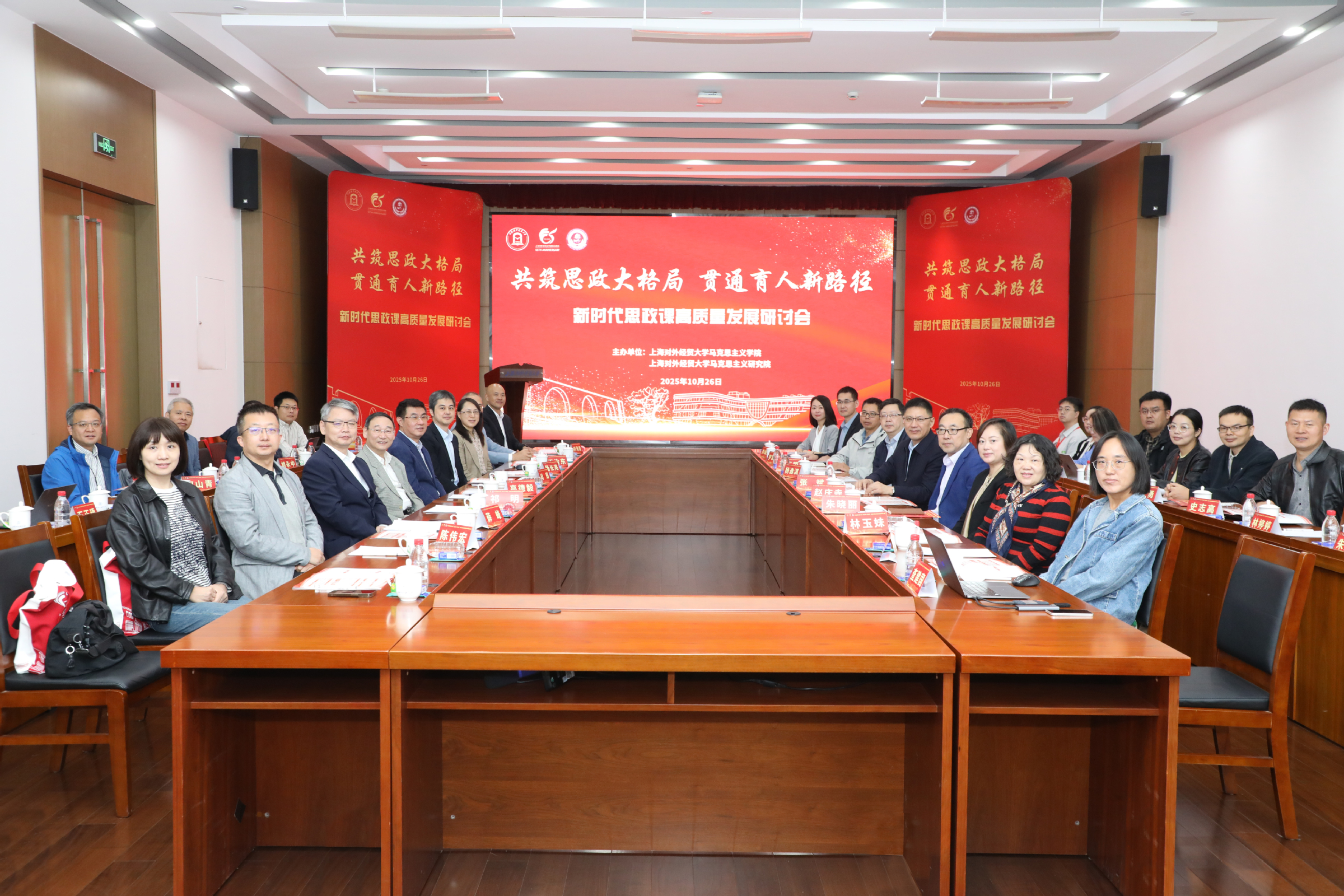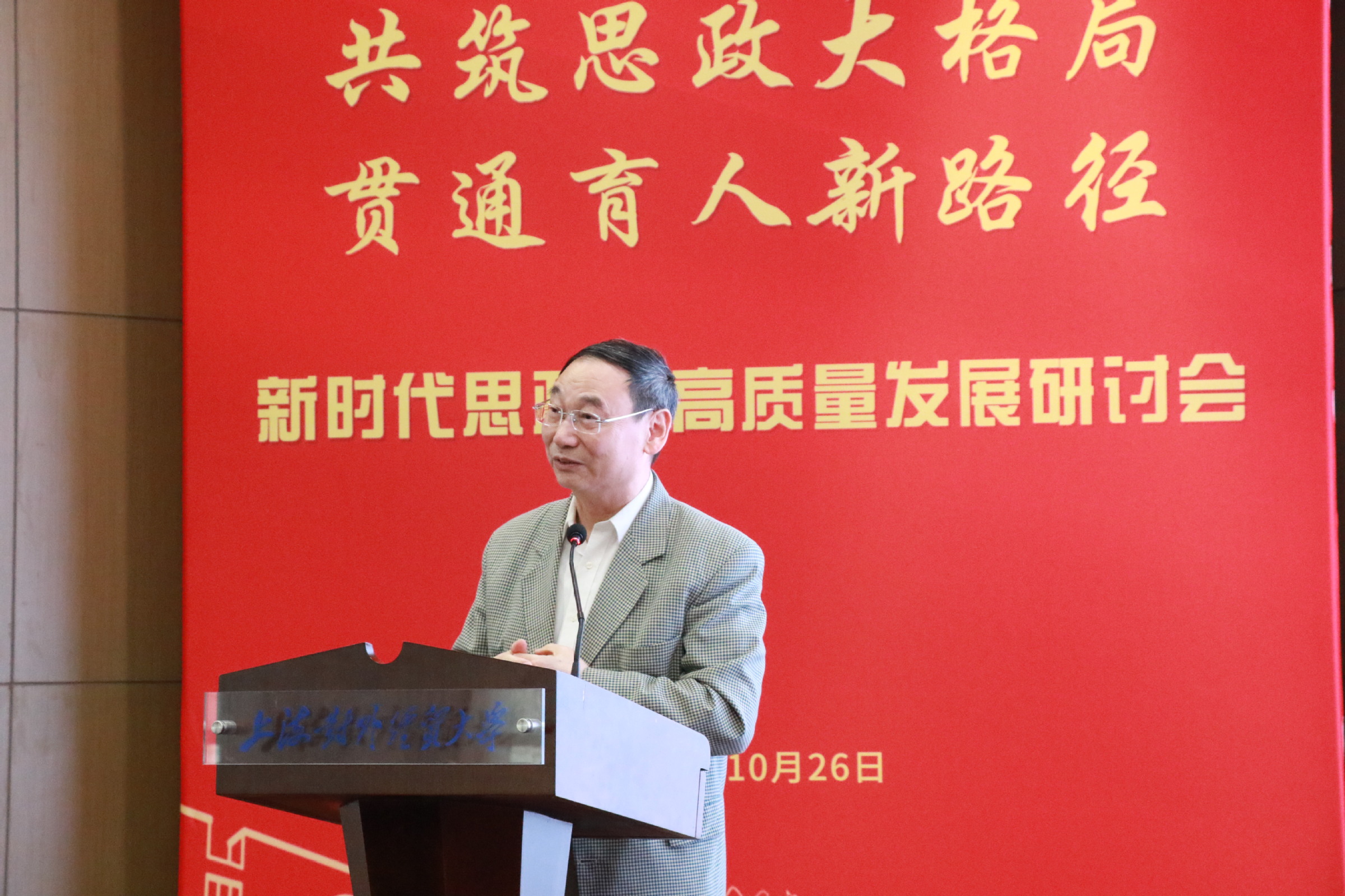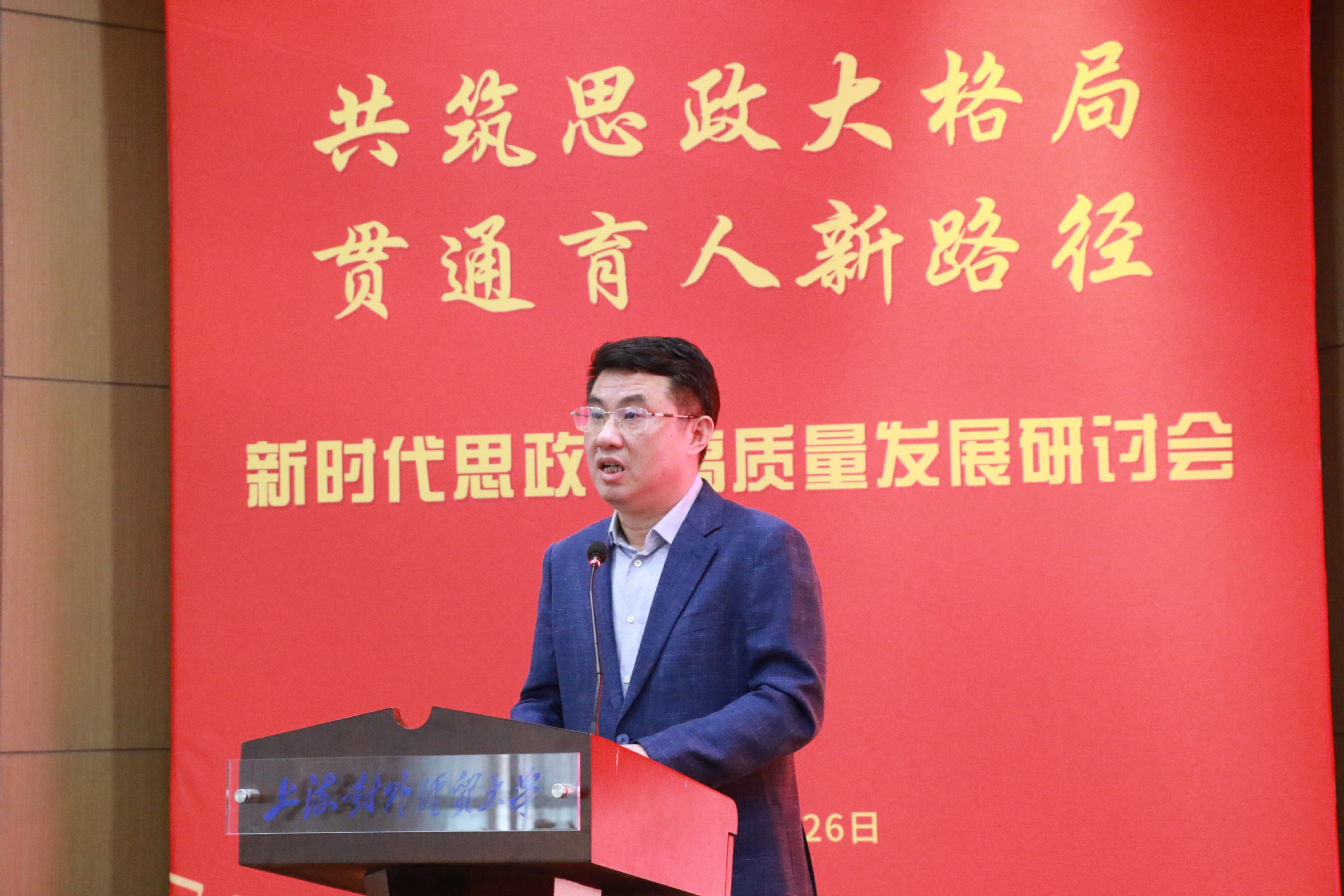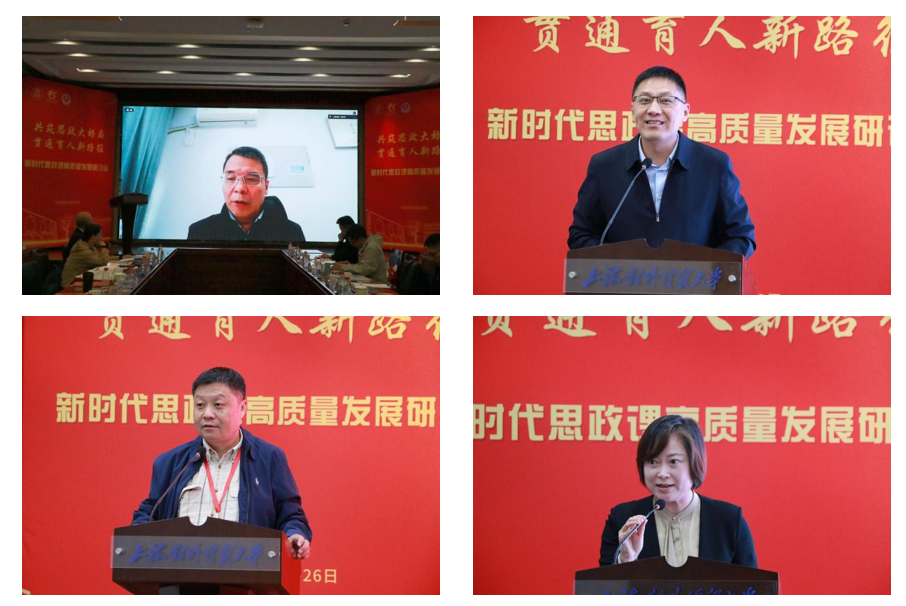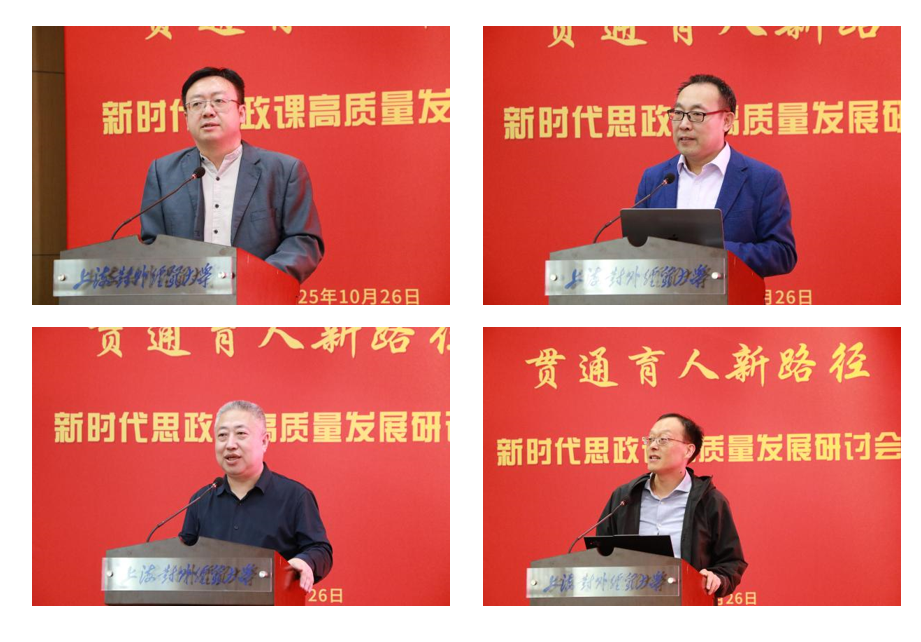 为深入学习贯彻习近平新时代中国特色社会主义思想和党的二十届四中全会精神,贯彻落实习近平总书记关于思政课建设的重要指示精神,扎实推进新时代思政课高质量发展,在学校成立65周年、马克思主义学院成立10周年之际,10月26日,上海对外经贸大学马克思主义学院和上海对外经贸大学马克思主义研究院共同举办了“共筑思政大格局,贯通育人新路径”——新时代思政课高质量发展研讨会。上海对外经贸大学党委书记祁明,上海市政府重大行政决策咨询专家、上海市大中小学思政课一体化建设指导委员会一体化建设专家指导组组长高德毅,上海开放大学党委书记闵辉,中共一大纪念馆党委书记、馆长薛峰,东华大学党委副书记、马克思主义学院院长王治东,上海市教委德育处副处长杨长亮,复旦大学马克思主义学院高国希教授,同济大学马克思主义学院陈大文教授等出席会议。来自上海市、安徽省、四川省的高校思政课教师,上海市松江区教育局,华东师范大学第一附属中学,上海对外经贸大学“大思政课”实践基地负责人以及我校专家学者共同参加研讨会。