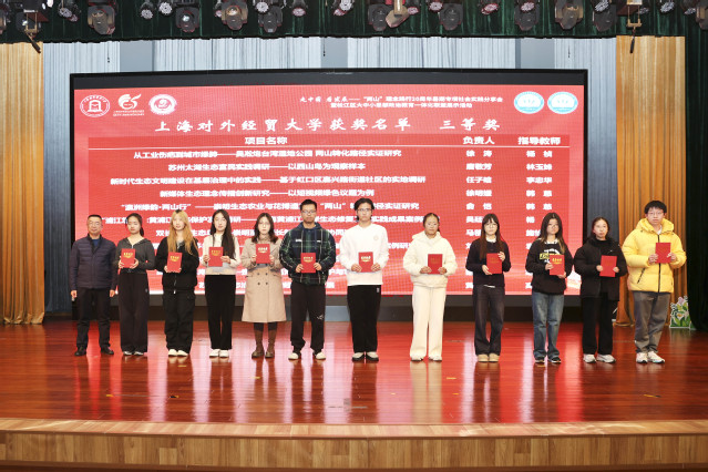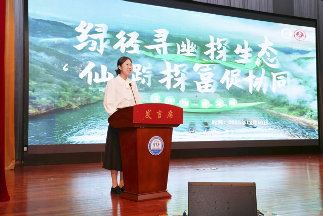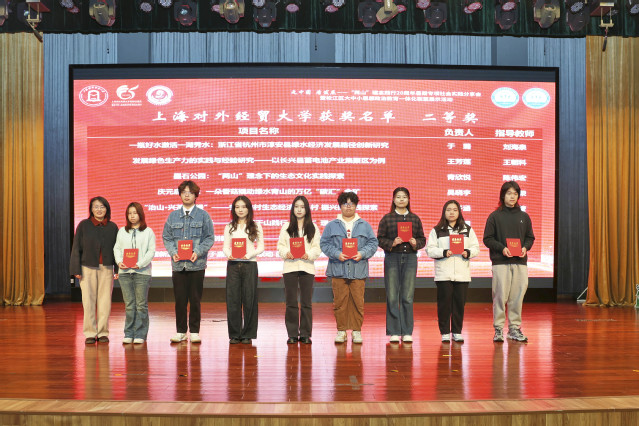 上海对外经贸大学马克思主义学院教师张朋林与研究生陈祺以“引航‘两山’路,同心向未来”为题进行分享,生动讲述了团队如何将理论与社会实践深度结合,深入田间地头开展调研的过程,全方位展现出“两山”理念在乡村、社区等基层一线落地生根、开花结果的生动图景。