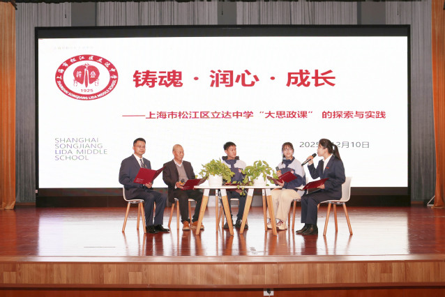 松江区立达中学的师生代表以“铸魂・润心・成长”为主题,从学生、家长、学校和思政教师四个维度分享了“大思政课”在“小课堂”与“大课堂”交融中的育人实效。