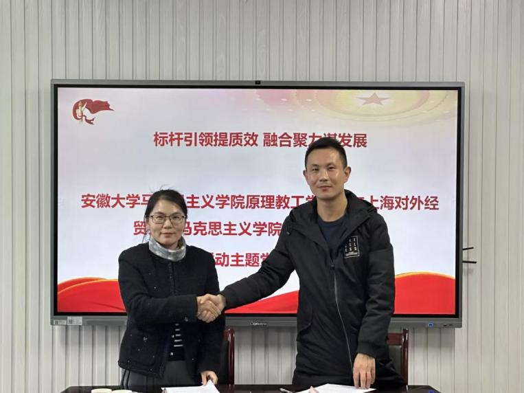 1月7日,马克思主义学院党委书记刘海泉带领支部教师前往安徽大学马克思主义学院,围绕“标杆引领提质效,融合聚力谋发展”主题开展结对交流座谈会。座谈会由安徽大学马克思主义学院党委书记潘金刚主持,他对我校马克思主义学院一行的到来表示热烈欢迎,并期待通过支部结对,与兄弟院校在学科发展、教学实践、党建创新上互学互鉴,共同破解发展难题。安徽大学马克思主义学院院长李明详细介绍了学院在学科建设、思政课改革、师资队伍建设等方面的成果与经验。
