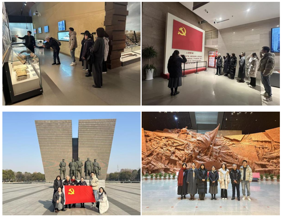 1月8日,鉴往知来,为缅怀革命先烈,传承红色基因,支部跟随习近平总书记的脚步学习党史,赴渡江战役纪念馆开展沉浸式党课并重温入党誓词。支部成员们沿着展览脉络,在讲解员讲述下深入学习渡江战役的战略决策、战役准备和战斗过程。支部书记牟雪莲围绕渡江战役所彰显的党的领导伟力、群众路线生命线意义和革命斗争精神,结合样板支部建设和党员职责,要求大家从历史中汲取力量,将“人民是真正的英雄”的理念深植心中,转化为潜心教学、扎实科研、服务学生的实际行动。