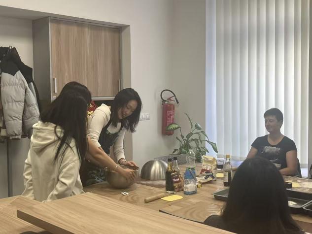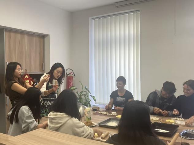 中秋的诗意跨越山海,于中秋来临之际,在布杰约维采商业技术学院孔子课堂国际中文教学工作坊,耐心示范“捏褶子”的手法SUIBErs与华裔学生围坐一桌,在老师的指导下,亲手包馅料、压花形,在指尖的忙碌与味蕾的体验中,沉浸式感受中华传统节日的文化魅力,共叙团圆情。另一边,与外国友人的包饺子环节更成了跨文化交流的“活课堂”。SUIBErs一边耐心示范“捏褶子”的手法,一边讲述饺子在中国人生活饮食中的文化意涵,在热气腾腾的生活场景中呈现中华文化的深厚底蕴。