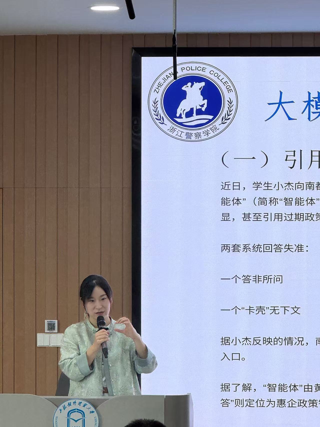 丁皓以“社会基层治理的政府知识库建构研究”为题,分享了人工智能赋能政务治理的创新思路。丁老师直指当前基层治理痛点:政务数据分散存储于各系统,“数据孤岛”现象突出,跨部门共享壁垒导致服务效率受限。她提出,基于AI技术构建智能政务知识库,是破解这一困局的关键路径。