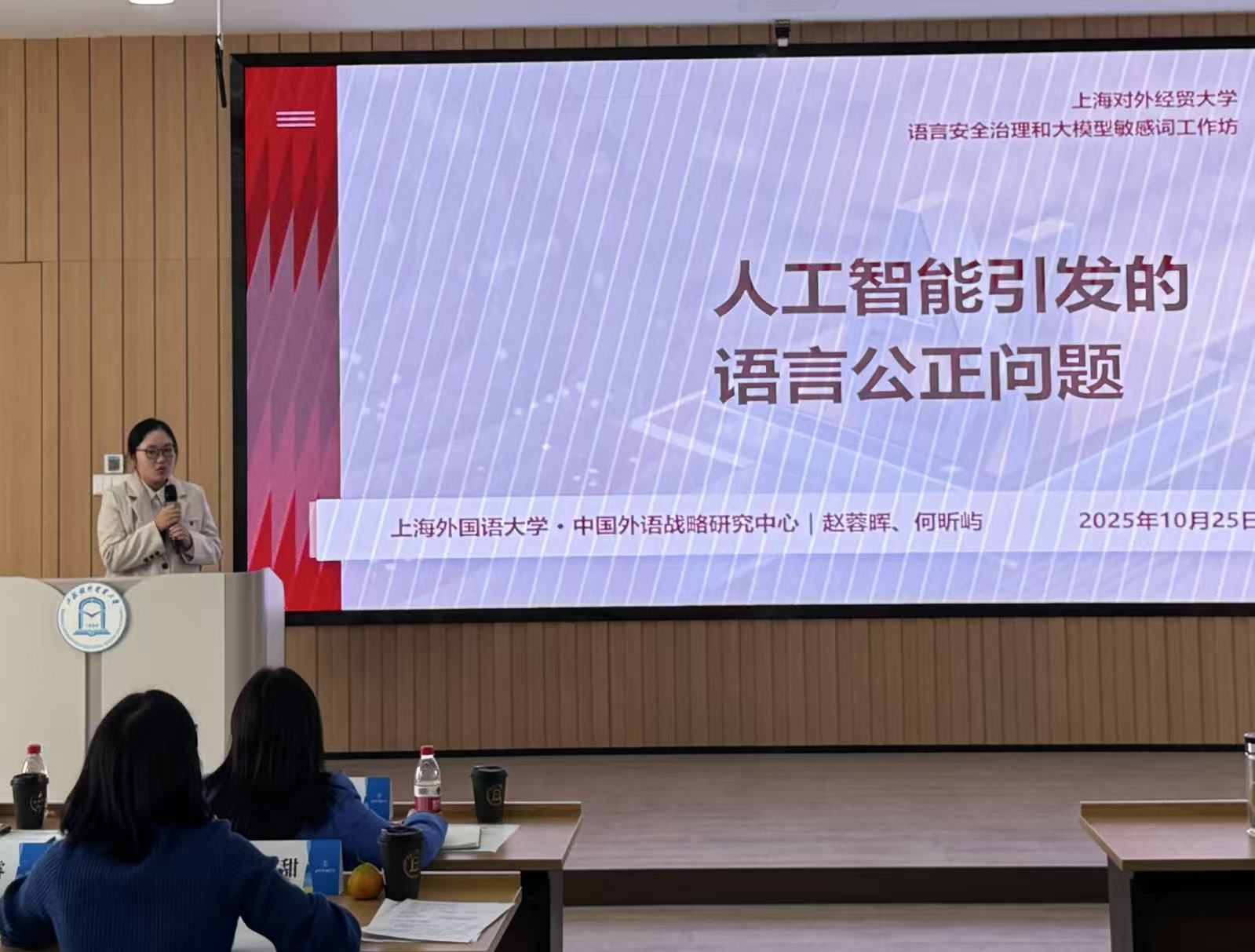 为深入探讨智能时代语言安全治理、大模型敏感词界定国际中文教育领域的学术前沿问题,加强校际学术交流与合作,2025年10月25日,我院主办的“语言安全治理和大模型敏感词工作坊暨第三届国际中文教育学院教师学术沙龙”于上海对外经贸大学松江校区学思楼D1顺利举行。浙江警察学院国际学院院长顾鸣镝、浙江警察学院讲师丁皓、上海电机学院国际教育学院院长鹿钦佞、上海外国语大学赵蓉晖教授团队,以及国际中文教育学院院长王艳艳、副院长吴怀成与学院教师李婧婷、赵彧、郑甜甜、周睿齐聚一堂,共话学术热点,共探发展路径。