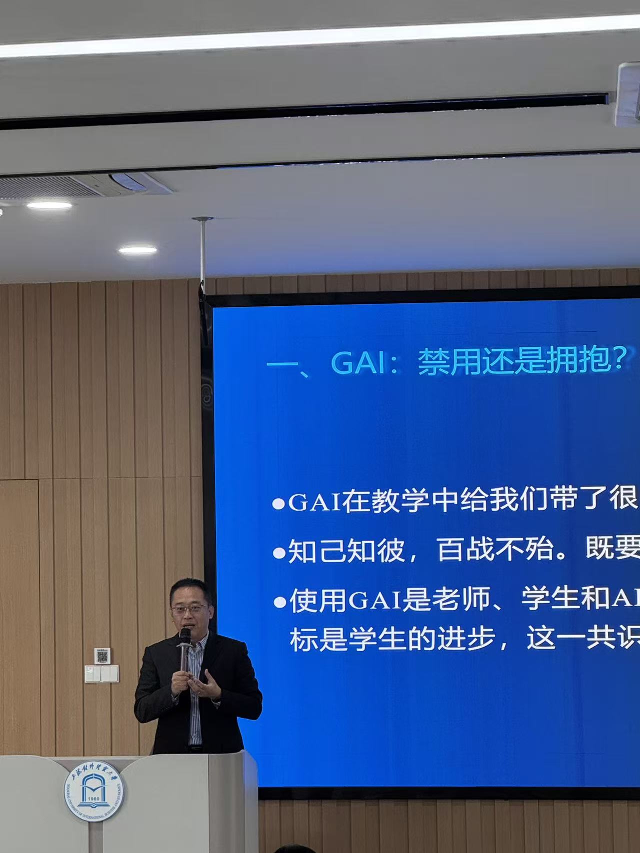 鹿钦佞以“师、生、机的‘斗智’与‘和解’”为主题,分享基于“脚手架原理”的生成式人工智能国情课教学设计,为留学生“中国概况”课程教学提供新方案。鹿教授指出,AI在国情课中存在明显痛点:学生易依赖AI直接生成答案替代思考,且部分AI对敏感议题拒绝回答或出现“中性伪装”“逻辑错乱”。