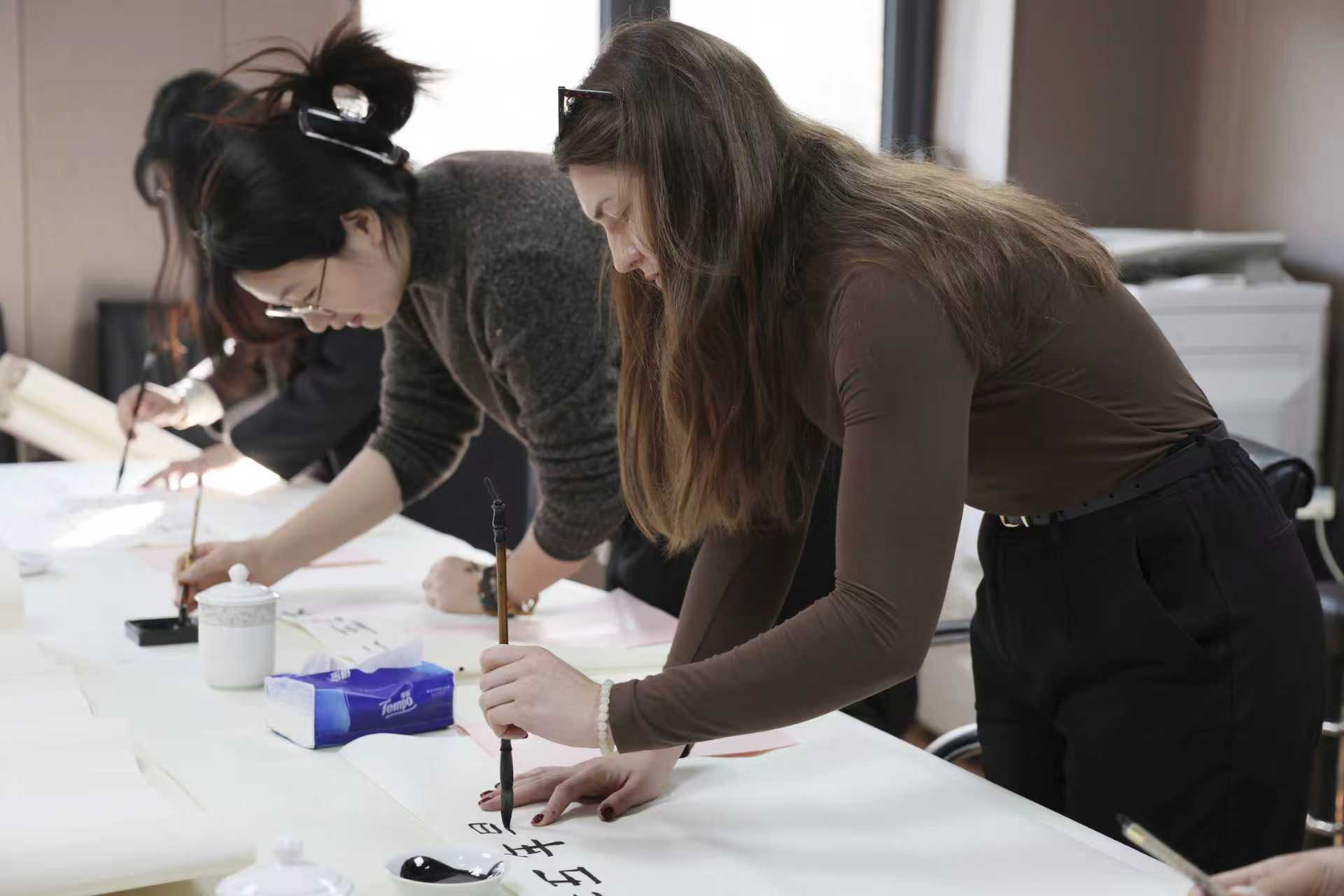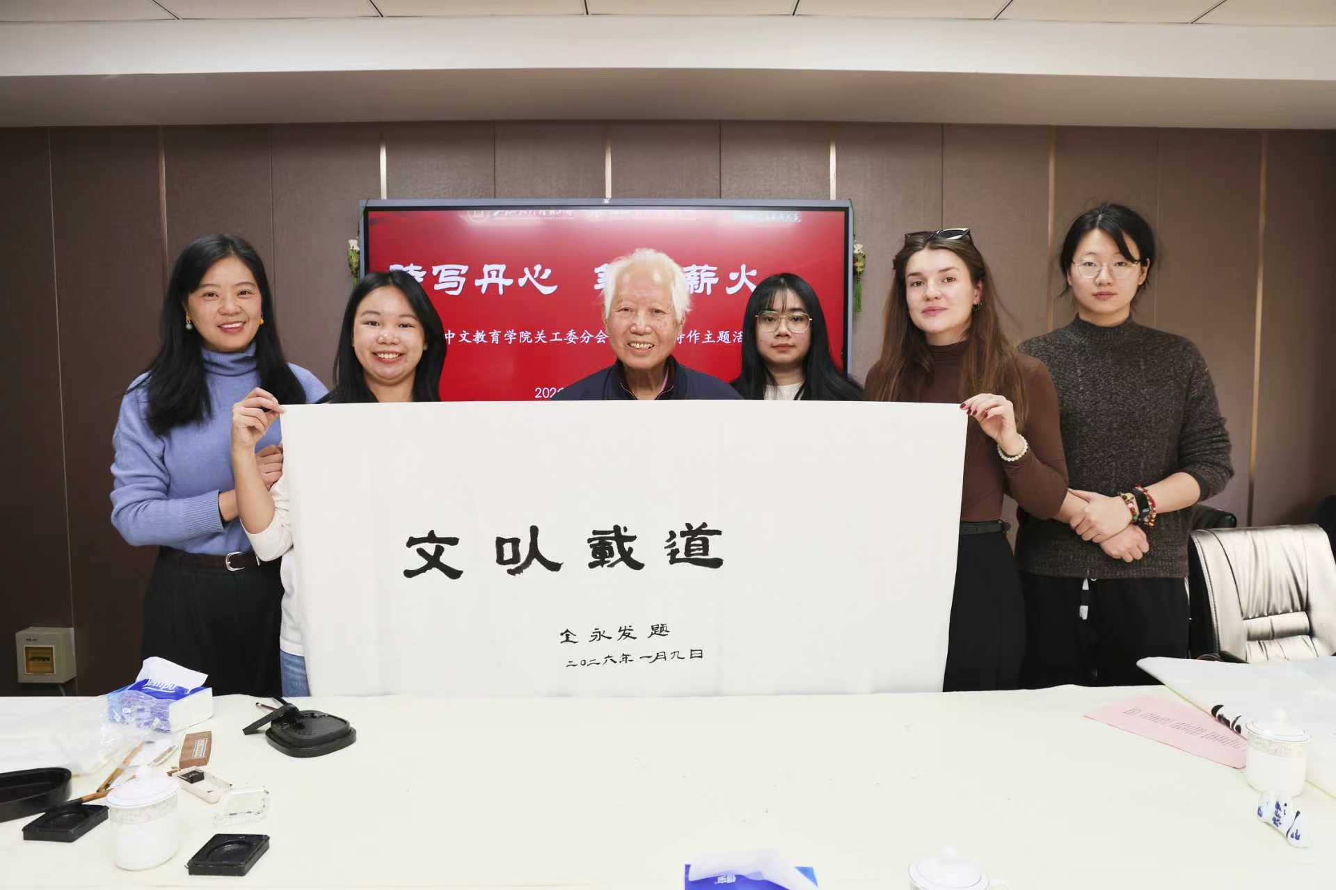 近日,在上海对外经贸大学关工委指导下,国际中文教育学院关工委分会在古北校区悦群楼102室成功举办“诗写丹心 笔传薪火”银青共书诗作主题活动。校离退休党委委员、校关工委副主任金永发,离退休党委副书记、老干部办公室副主任仇文,校关工委副秘书长沈玲,学院党总支副书记虞娅娜,兼职辅导员梁旖,中外学生代表共同参与活动,在笔墨流转间传承中华文化,共话青年使命。
