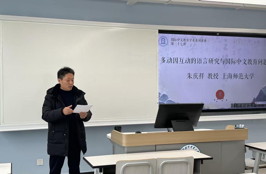 2026年3月3日,上海师范大学对外汉语学院朱庆祥教授受邀来我校作题为“多动因互动的语言研究与国际中文教育问题”的学术讲座。本次讲座由国际中文教育学院副院长吴怀成主持。