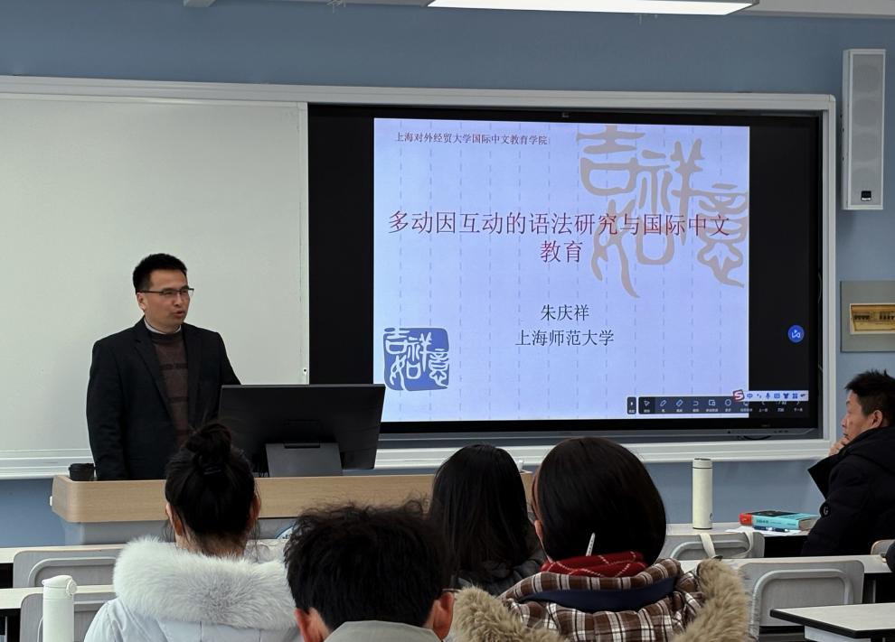 2026年3月3日,上海师范大学对外汉语学院朱庆祥教授受邀来我校作题为“多动因互动的语言研究与国际中文教育问题”的学术讲座。本次讲座由国际中文教育学院副院长吴怀成主持。