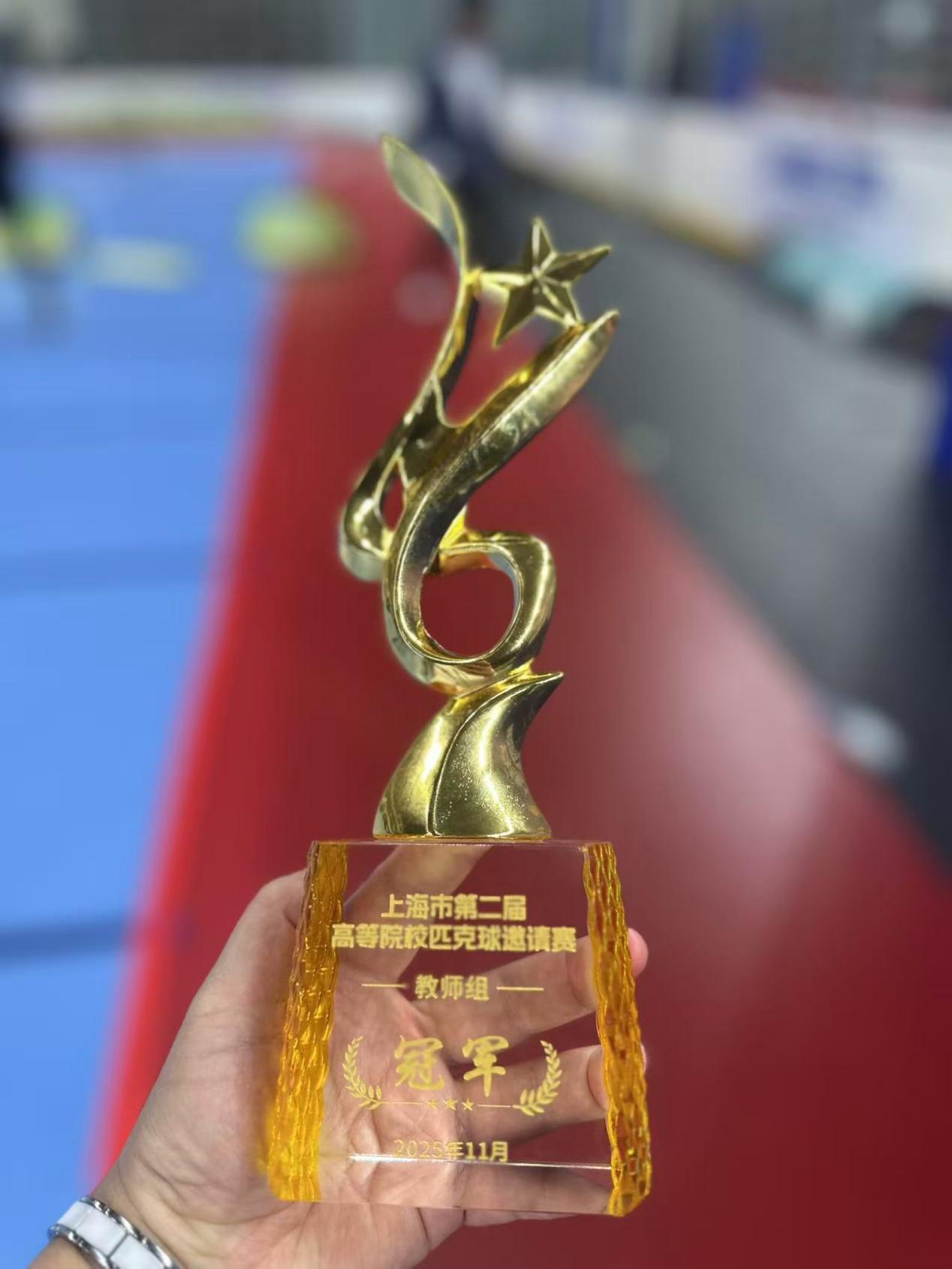11月21日,由上海体育大学主办,松江大学园区高校体育联盟与上海大学生体育中心联合承办的上海市第二届高校匹克球邀请赛圆满落幕。由我校教工匹克球协会会长王金强教授和体育健康学院李永华教练带队出征的教工匹克球队,在强手如林的赛场上沉着应战,凭借出色的团队默契与顽强的拼搏精神,自小组赛起便一路过关斩将,最终成功卫冕,再次将冠军奖杯收入囊中。