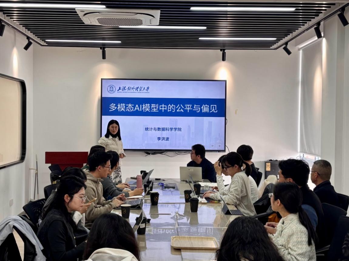 本次活动特邀统计与数据科学学院李洪波老师与国际经贸创新与治理研究院许高翔老师担任主讲嘉宾。两位老师分别围绕前沿人工智能技术与科研成果转化两大核心主题,结合自身深耕的研究领域进行了深度解析与经验分享。