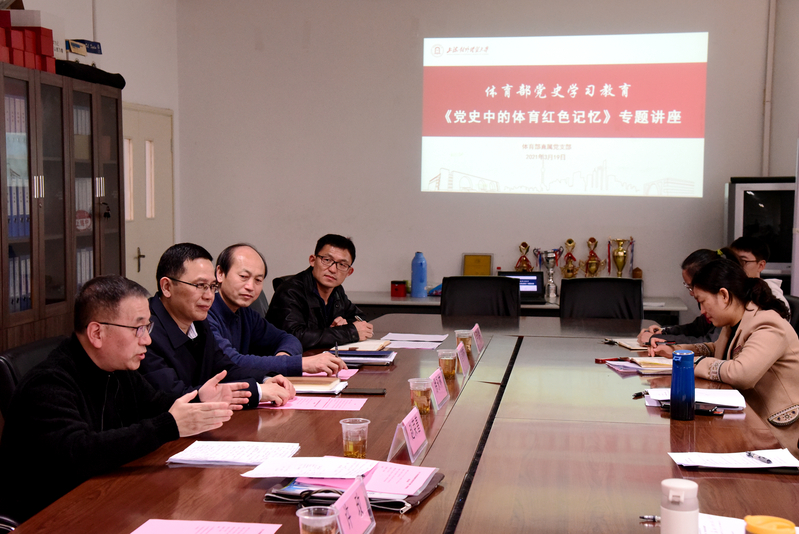 李永华在总结时表示,今年是中国共产党建党100周年,中共党史中的体育红色回忆,丰富生动,精彩励志,可以激励当下,为百年交汇期的中华民族伟大复兴而担当拼博。他希望我校的体育工作者,要传承“顽强拼搏、奋勇争先”的体育精神,在工作中勇于担当,敢于胜利,推进体育部各项工作的快速发展,以优异成绩向建党百年献礼。