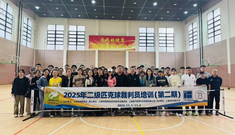 为贯彻落实国家体育总局关于新兴体育项目发展的指导精神,推动体育教育与社会体育服务的深度融合,11月1-2日,由上海市网球协会主办,上海市网球协会匹克球专业委员会、上海金弓体育文化发展有限公司承办,上海对外经贸大学体育健康学院协办的国家二级匹克球裁判员培训班在该校古北校区顺利举行,来自全市各区的乒、羽、网等项目注册裁判员共40名学员齐聚一堂,参与系统培训与实践考核,我校10名师生参加培训。11月8日,培训班将在我校松江校区完成见习执裁环节。