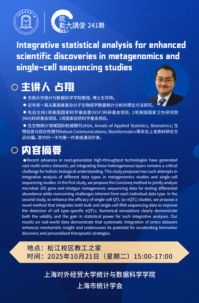 10.21 241 Integrative statistical analysis for enhanced scientific discoveries in metagenomics and single-cell sequencing studies