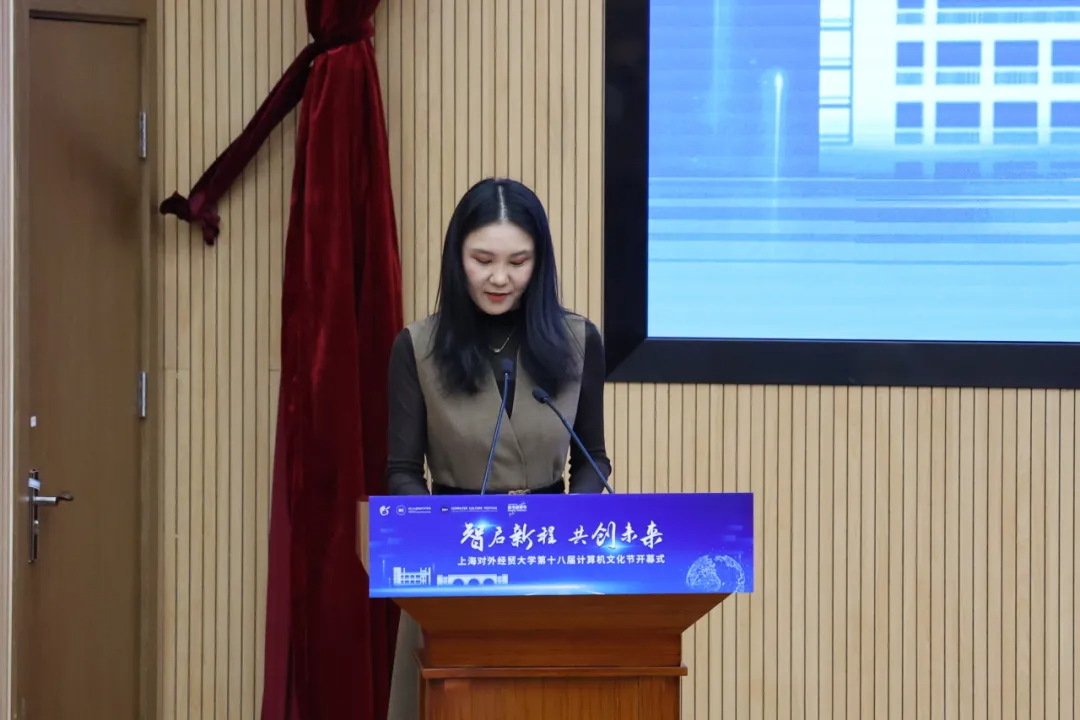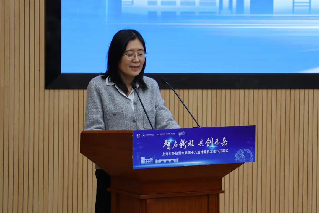 开幕式上,上海对外经贸大学副校长姜秀珍向第十八届计算机文化节的顺利举行表示热烈祝贺,向参与此次活动组织和筹备工作的老师和同学表示衷心感谢。她指出,数智技术重塑社会,党的二十届四中全会强调科技人才重要性,计算机行业迈向“智能融合驱动,跨领域协同创新”新范式;学校统计与数据科学学院秉持“理工固本、数智铸魂”理念,培养交叉复合型人才,助力数字发展。作为校园重要品牌,计算机文化节已发展为综合性平台,见证学校计算机教育发展,学子在重大赛事中屡创佳绩,此次活动将延续“学术与趣味”结合理念激发学子热情。同时,她向同学们提出了三点希望,第一,坚定理想使命,涵养数字素养,让个人理想与国家发展同行共振;第二,锻炼实践能力,锤炼数字技能,以扎实行动锚定职业发展航向;第三,善用数字技术,深耕文化创新,用创新思想赋能激活传统文化。
