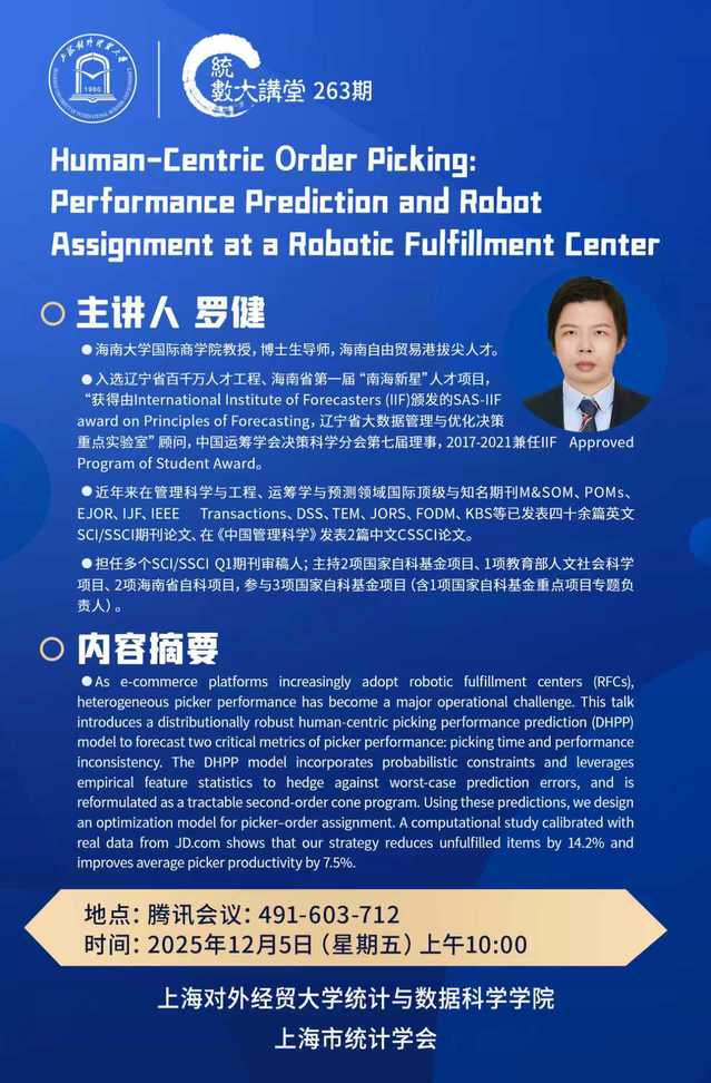 12.05 263 Human-Centric Order Picking: Performance Prediction and Robot Assignment at a Robotic Fulfillment Center