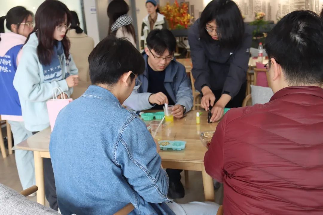 在学生志愿者的指导下,校友们仔细挑选喜爱的花瓣、颜料和香精,将薄荷、艾叶等装饰品倒入皂基,在模具里等待静置固化。通过制作樱花皂,校友们不仅感受到了手工创作的乐趣,更增添了彼此间的情谊。