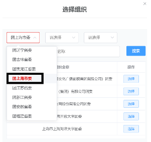 在团组织一栏,在三个下拉选择框中,分别选择:【团上海市委】-【上海对外经贸大学团委】-【统计与数据科学学院】