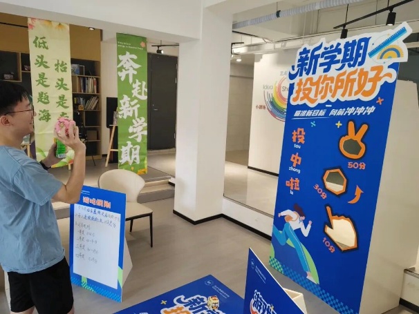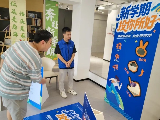 学院在报到处设置了“投你所好”游戏,获胜即可领取返校第一份活动小礼品~同学们有序参与,跃跃欲试。