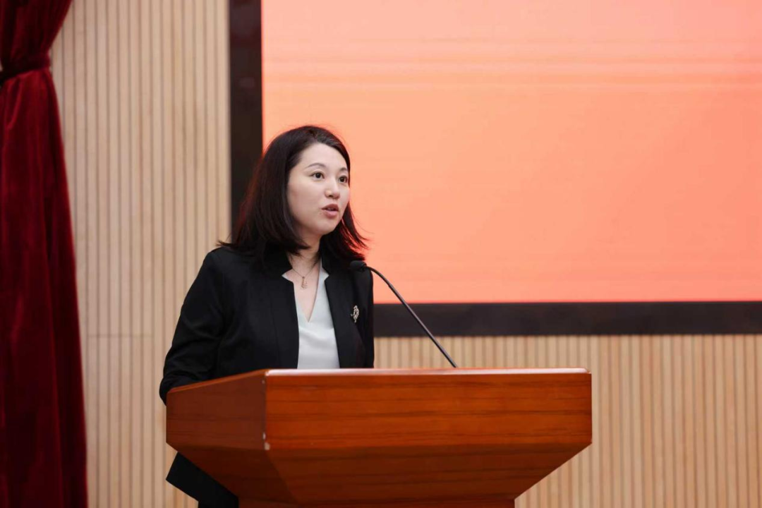 工商管理学院教师左鹏作为优秀指导教师代表发言。她回顾了与同学们一同参与万企项目的宝贵经历,对支持项目的领导嘉宾、企业单位和师生表示感谢。她分享了调研中师生共同学习、协作探索的过程,并呼吁更多教师携手带领学生在服务国家发展中成长成才。