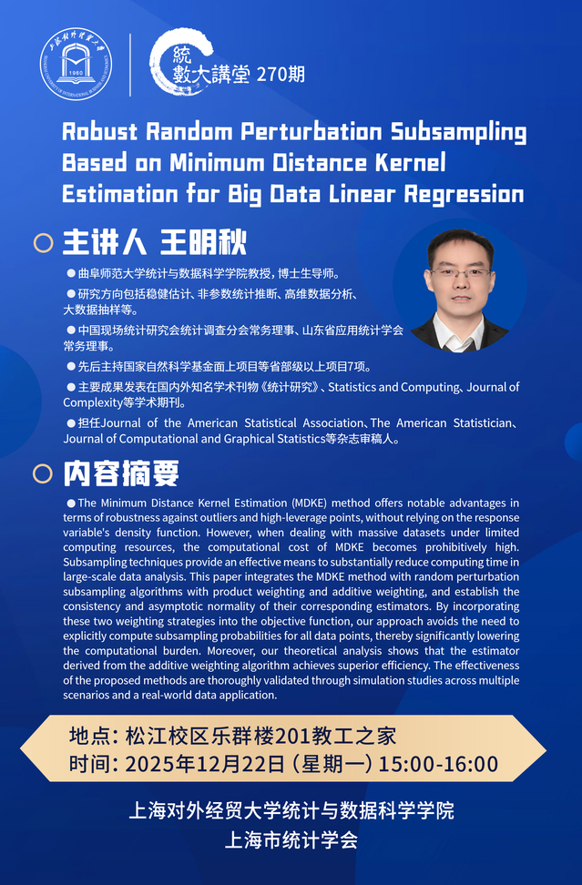 12.22 270 Robust Random Perturbation Subsampling Based on Minimum Distance Kernel Estimation for Big Data Linear Regression