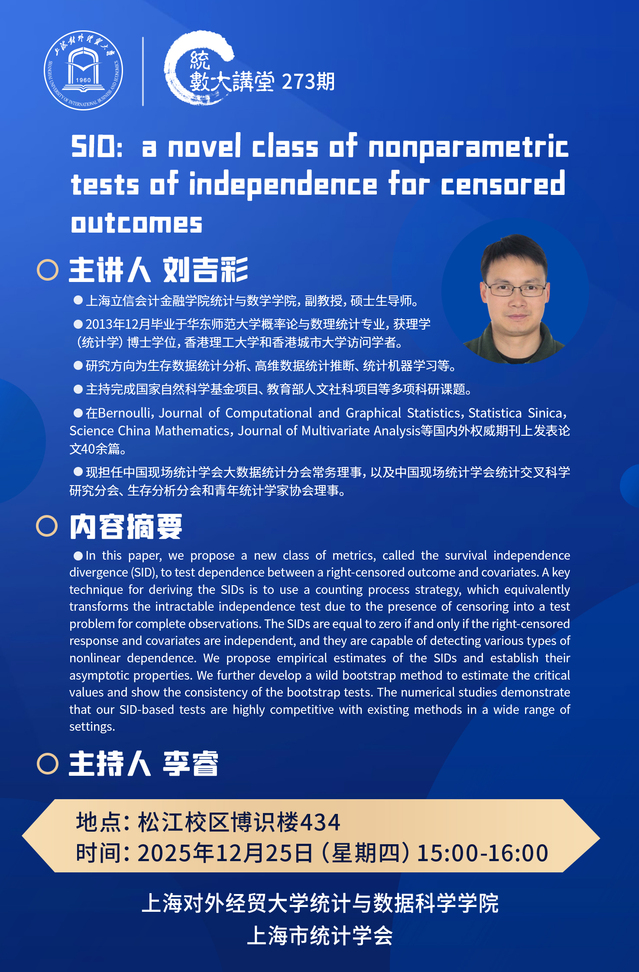 12.25 273 SID: a novel class of nonparametric tests of independence for censored outcomes