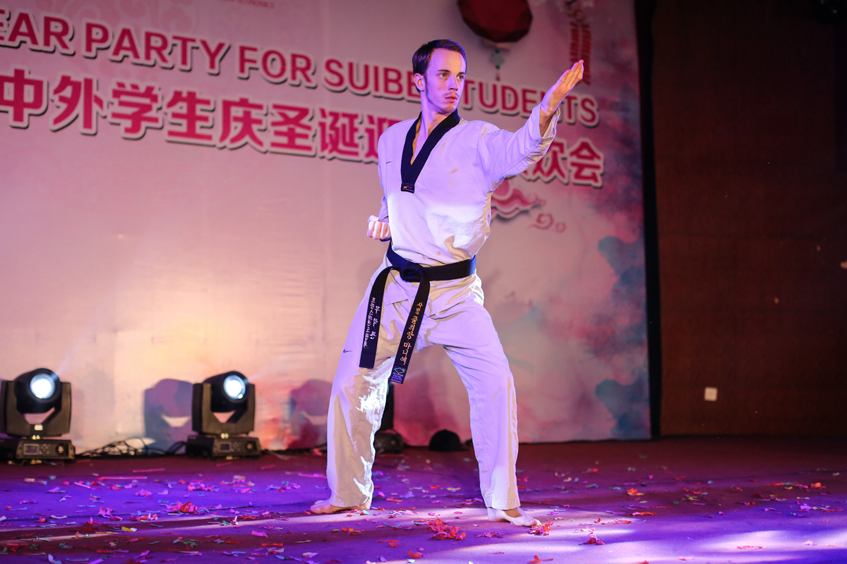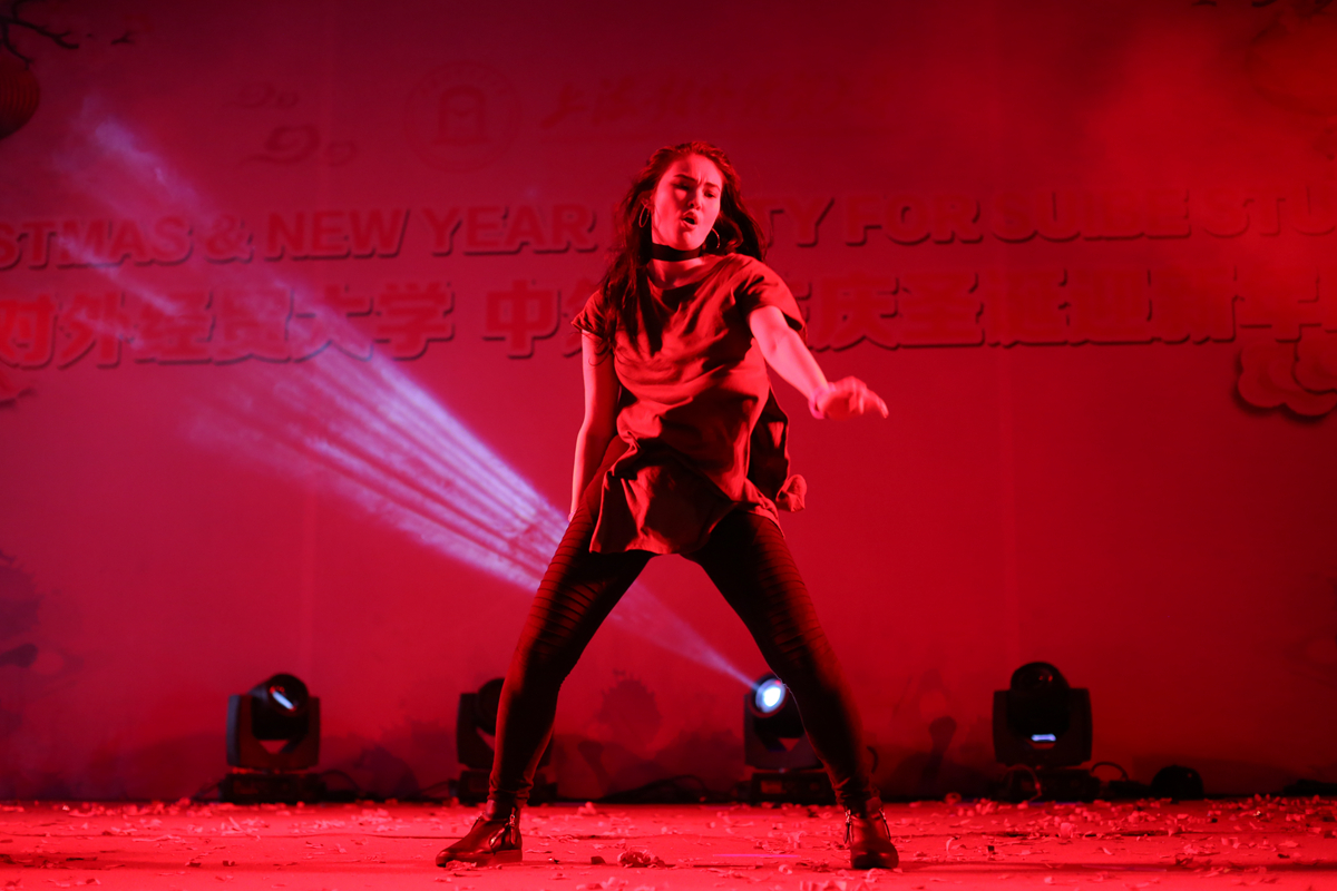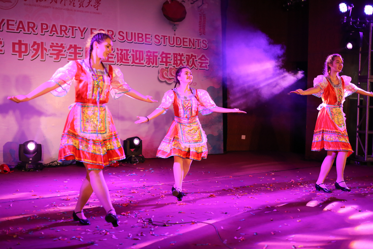 12月15日下午,上海对外经贸大学中外学生庆圣诞迎新年联欢会在松江校区举行。来自110多个国家的250余名留学生和部分中国学生参加了此次联欢活动。