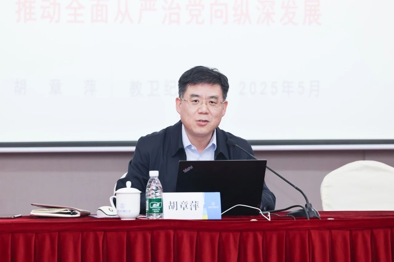 报告中,胡章萍从“中央八项规定精神的历史发展与时代意义”“违反中央八项规定精神的具体表现与纪法红线”“深入贯彻中央八项规定精神学习教育要求”三个方面对中央八项规定精神进行了详细解读。他回顾了中央颁布八项规定的历史背景、出台动因以及制度深化与实践演进过程,详细阐述了中央八项规定的历史成效与政治价值。他结合具体案例针对违规吃喝、违规收送礼品礼金等六大违反中央八项规定精神的具体表现作了典型案例分析和解读,明确了相关纪法红线和底线。针对正在开展的学习教育,他指出,中央八项规定精神是全面从严治党的“金色名片”,是全体党员干部的“终身课题”,要以“咬定青山不放松”的韧劲,将中央八项规定精神内化为政治自觉、外化为行动习惯,以优良党风引领社风民风,为推进中国式现代化提供坚强作风保障。