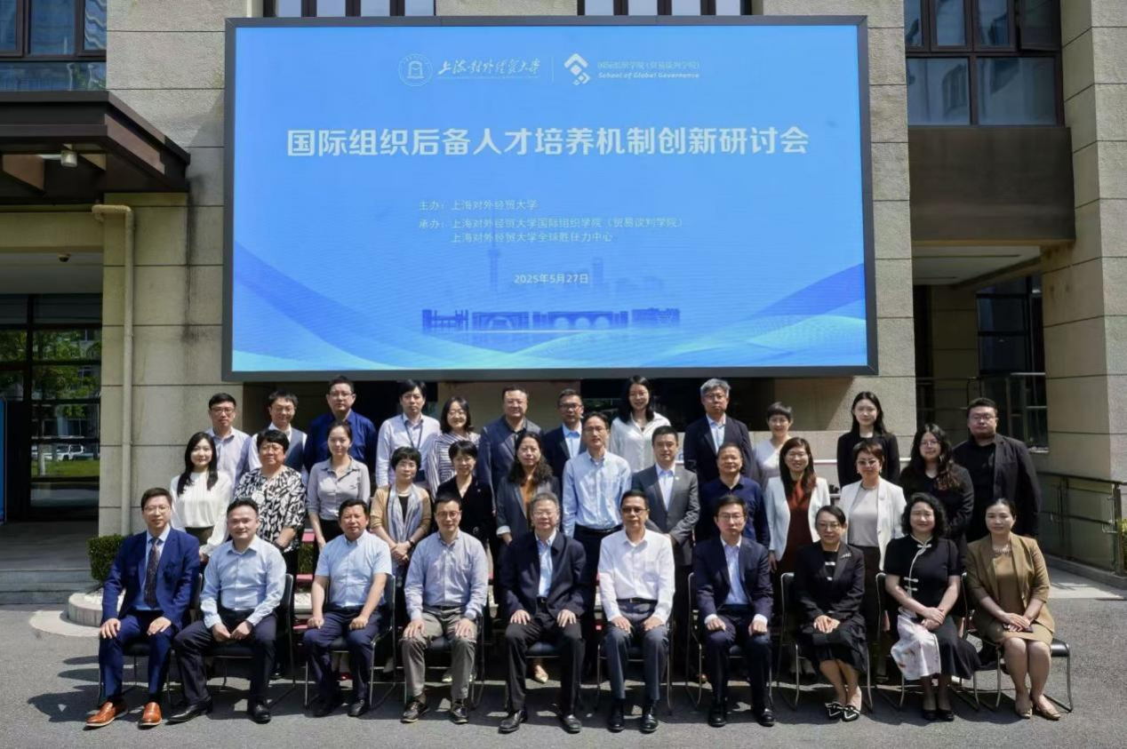 5月27日,在上海对外经贸大学国际组织学院(贸易谈判学院)、全球胜任力中心(“一学院、一中心”)揭牌成立一周年之际,上海对外经贸大学在长宁校区成功举办“国际组织后备人才培养机制创新”研讨会。本次会议由上海对外经贸大学主办,国际组织学院(贸易谈判学院)、全球胜任力中心承办。来自复旦大学、华东师范大学、北京外国语大学、上海外国语大学、上海财经大学、东华大学、东北财经大学、华东政法大学、上海师范大学、上海海洋大学、上海政法学院、上海市教育科学研究院等国内10余所高校及研究机构的专家学者出席会议,围绕国际组织人才培养模式创新、输送路径优化等议题展开深度交流。