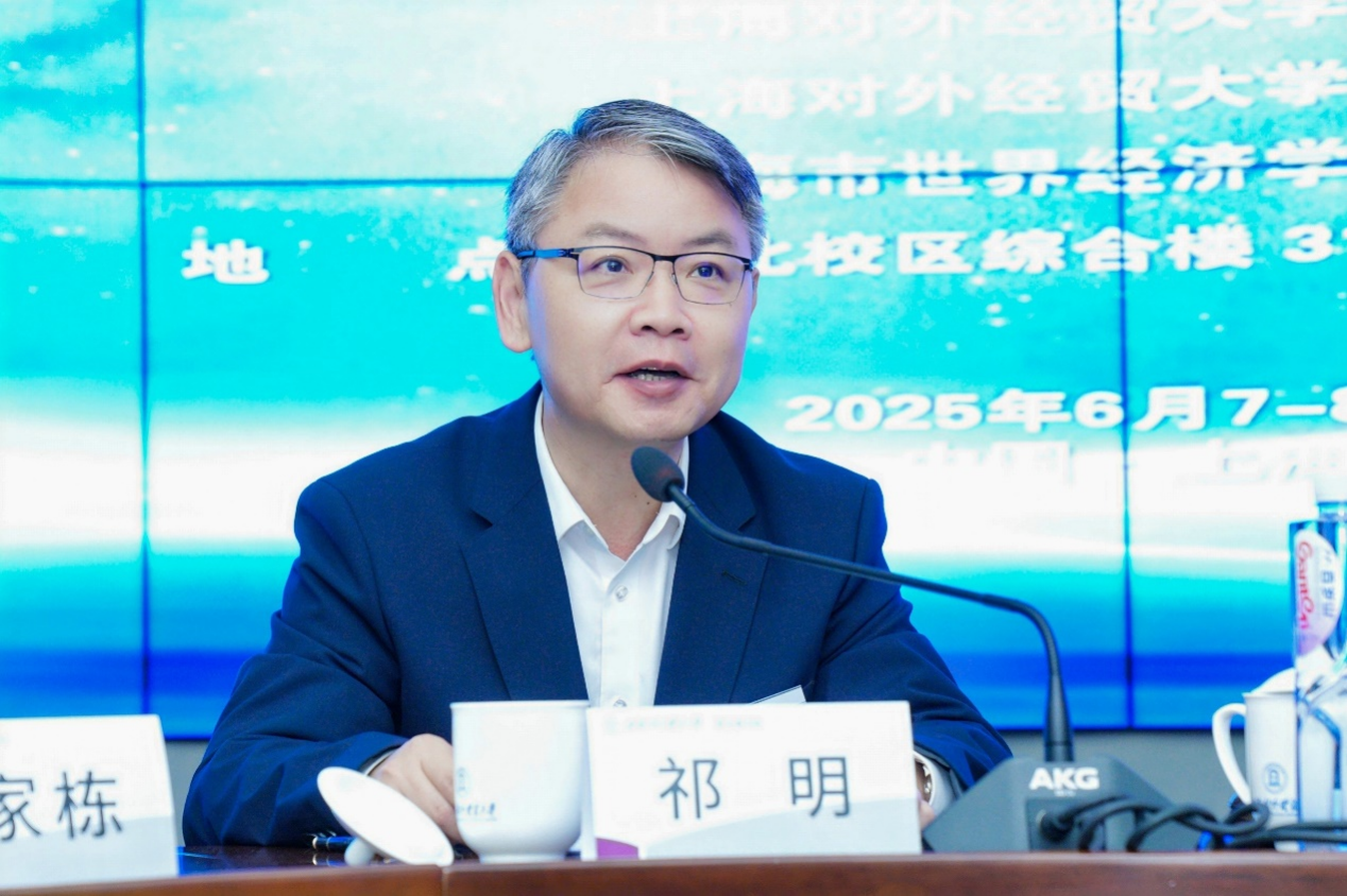 上海对外经贸大学党委书记祁明教授代表学校向与会领导、专家学者表示热烈欢迎,向各位领导、专家对学校事业发展所做的指导和帮助表示最诚挚的感谢。祁明介绍了学校服务高水平开放的学科特色、服务国家战略需求的人才培养成效和服务国家经贸治理的智库建设优势,并希望通过本次研讨会的深入交流和思想碰撞,产出一系列富有价值的研究成果,为应对供应链重组挑战、把握人工智能机遇、深化高水平对外开放提供有力的学术支撑与决策参考。