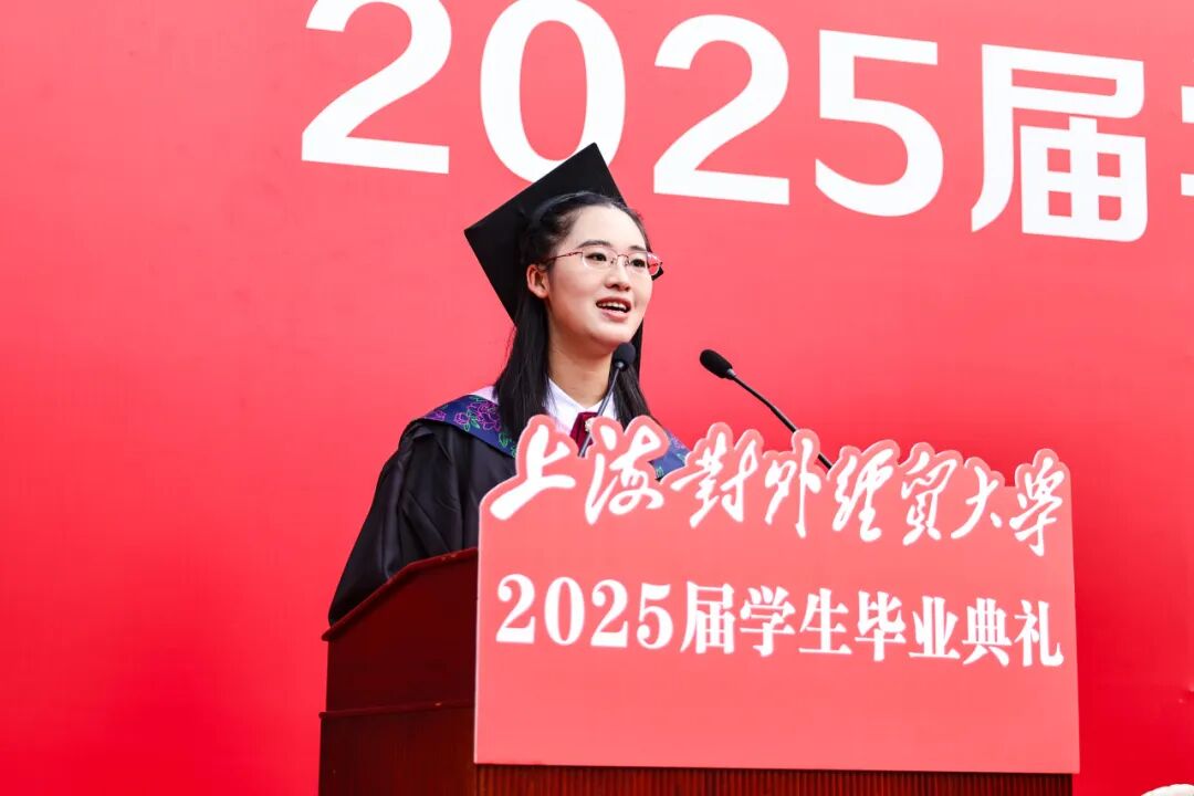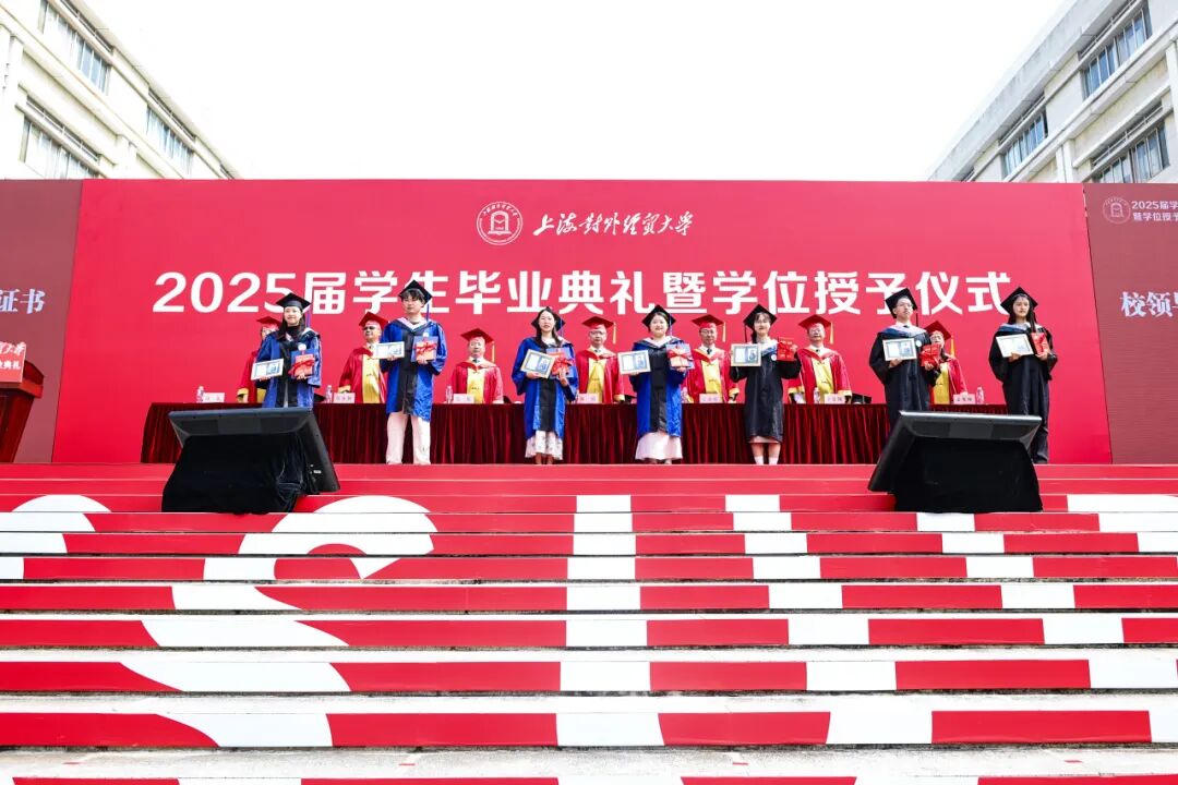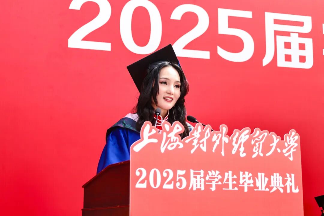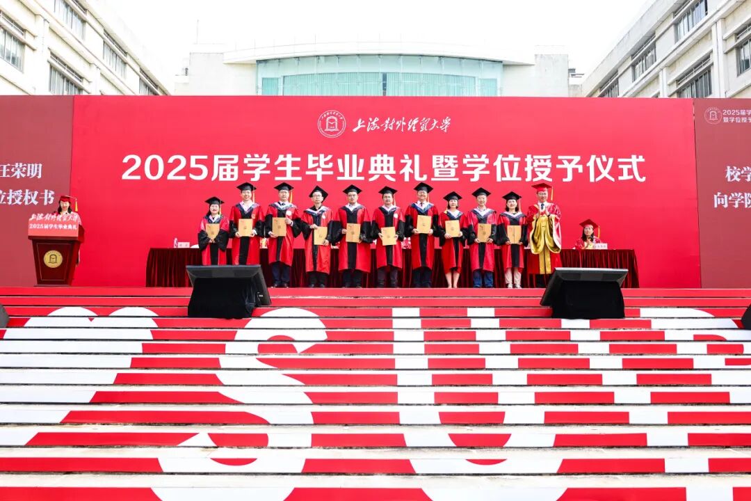 在雄壮的国歌声中,上海对外经贸大学2025届学生毕业典礼暨学位授予仪式拉开序幕。