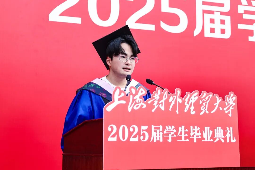 研究生毕业生代表工商管理学院马政在发言中回顾了申博的历程,感谢学校不仅让同学们汲取了系统的专业知识,更深刻领会了“经世济民”的担当,表示将带着在学校学到的知识、练就的本领和沉淀的品格,脚踏实地,勇毅前行,让书本上的知识在现实的土壤中扎根生长。
