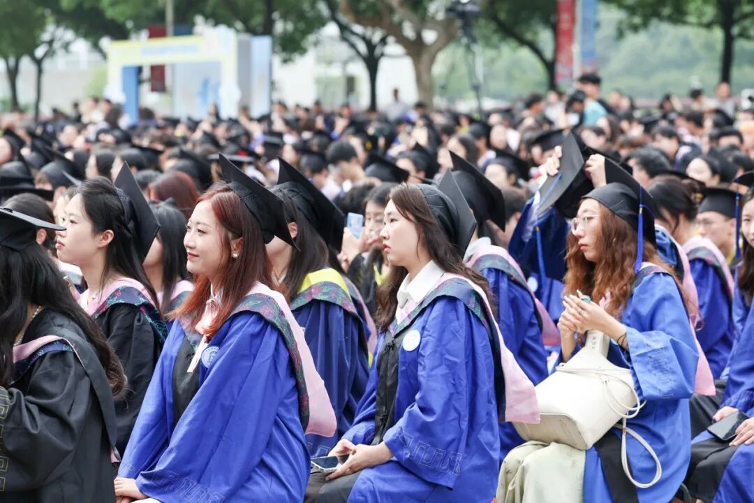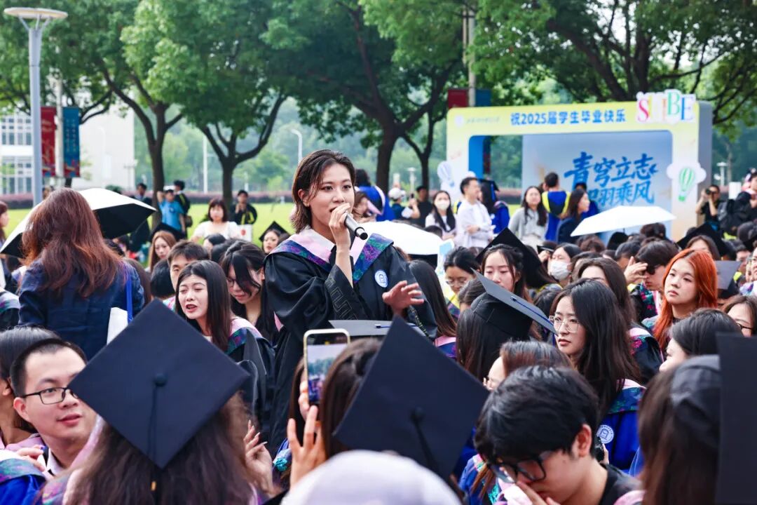 6月25日上午,学校2025届学生毕业典礼暨学位授予仪式在松江校区图文信息大楼南广场隆重举行。2025届全体毕业生与学校领导、老师和亲友们欢聚一堂、共襄盛会。