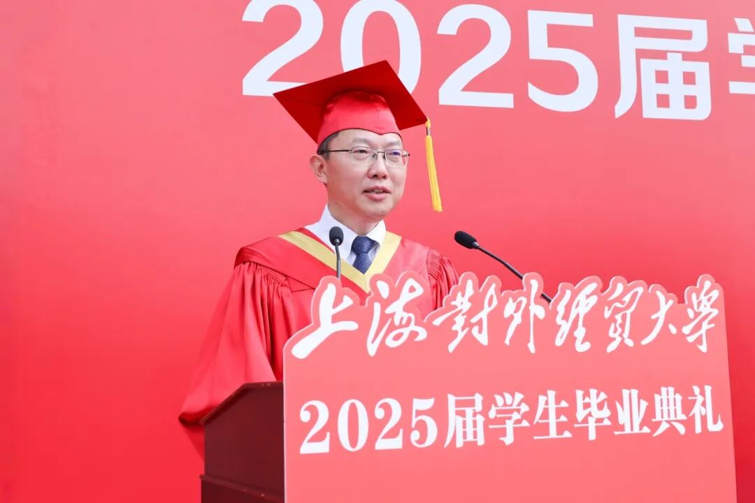 第三,在数字奔涌的浪潮中,锚定前行的时代坐标。这是一个科技变革加速与地缘政治动荡叠加的时代,也是一个大有可为的时代。要坚信,百年未有之大变局只是“磨刀石”,中华民族伟大复兴势不可当;要相信,强国建设、民族复兴不是空中楼阁,而在同学们未来的使命担当中;要相信,科技不是怪兽,人文之花也永远不会凋谢,科技赋能人文,人文则是科技的灵魂。希望毕业生们像海燕一样,在数字经济、数字贸易、数字金融、涉外法治、国际传播等专业领域的天空中翱翔。