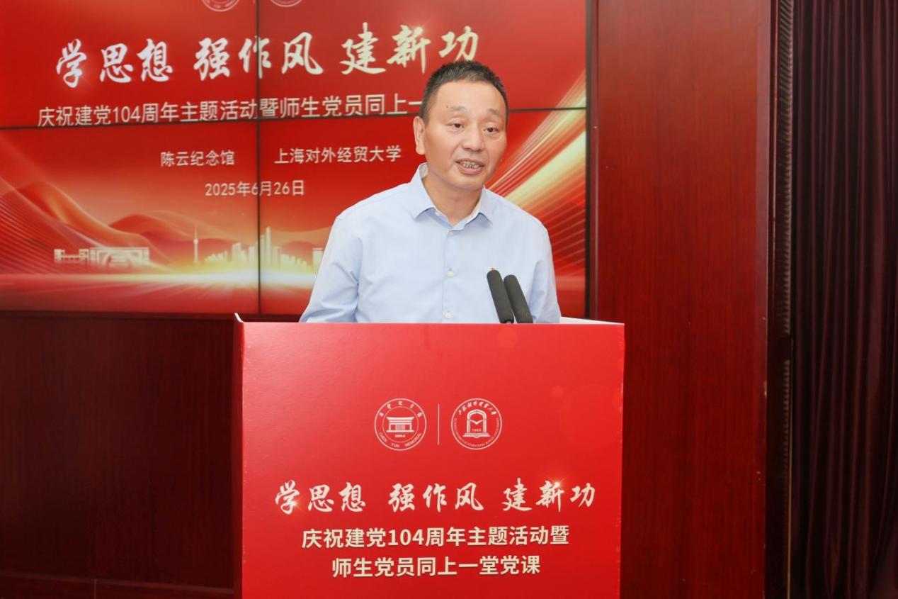 校党委书记祁明在致辞中表示,今年是陈云同志诞辰120周年,在建党104周年前夕举办此次主题活动,是一次追寻伟人足迹的研学之行,一次加强作风建设的有力之举,也是一次馆校协同育人、双向赋能的有益探索。作为长期深耕对外经贸领域高校的师生党员,我们要学习陈云同志身上勤于学习、深入调研、探索规律、抓住要害的精神品质,以及在经济建设工作和党的作风建设中的宝贵经验和重要观点,从他光辉的一生中汲取智慧力量。要坚定理想信念,锤炼优良作风,为学校事业发展提供坚强保障。要始终坚持以师生为中心,锻造唯实从实的工作作风,坚决反对不正之风,切实解决师生的急难愁盼。要善用科学方法、总结规律,不断加强自身建设,强化同题共答,真正将“学思想、强作风、建新功”的要求内化于心、外化于行,以实干实绩推动学校综合改革等各项事业取得新进展、开创新局面。