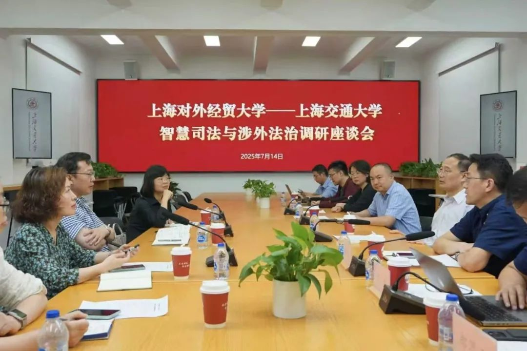7月14日,上海对外经贸大学与上海交通大学在上海交通大学徐汇校区联合举办“智慧司法与涉外法治调研座谈会”。我校校长汪荣明,上海交通大学原党委常务副书记、现任校务委员会专职副主任顾锋等出席座谈会。会议由上海交通大学智慧司法研究院(以下简称“智研院”)常务副院长杨力主持。