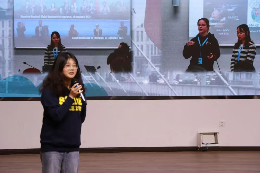 司徒力云就学校参与“服务联合国机构志愿者项目”作专题汇报。她介绍了学校自参与项目以来围绕育人目标、选拔机制、政策支持、跟踪管理、后勤保障、典型宣传等内容,不断探索服务全球治理青年人才培养和国际志愿服务的新路径。