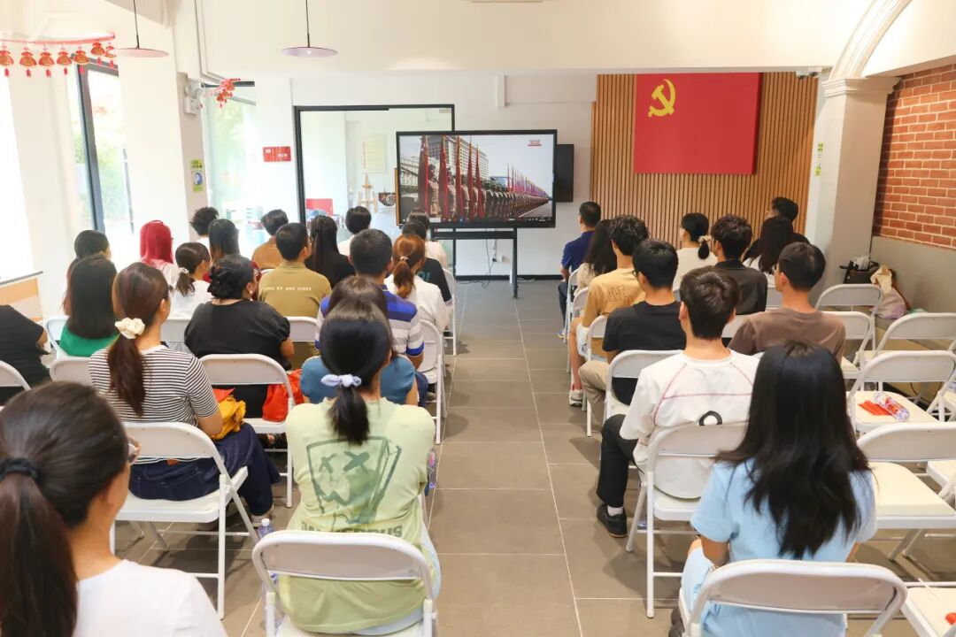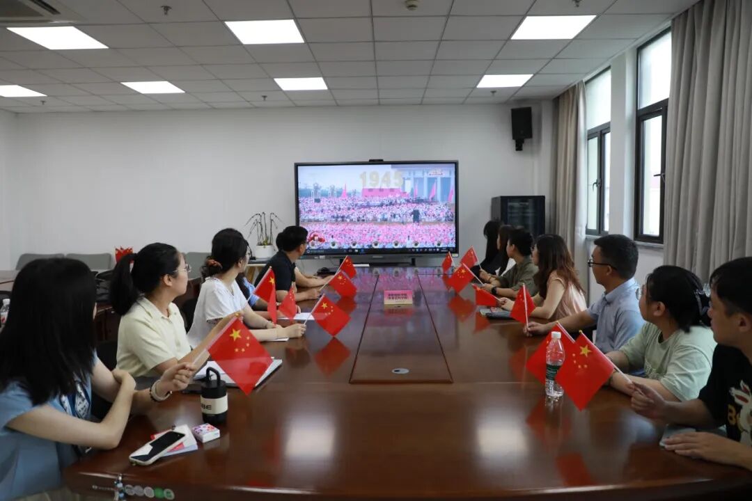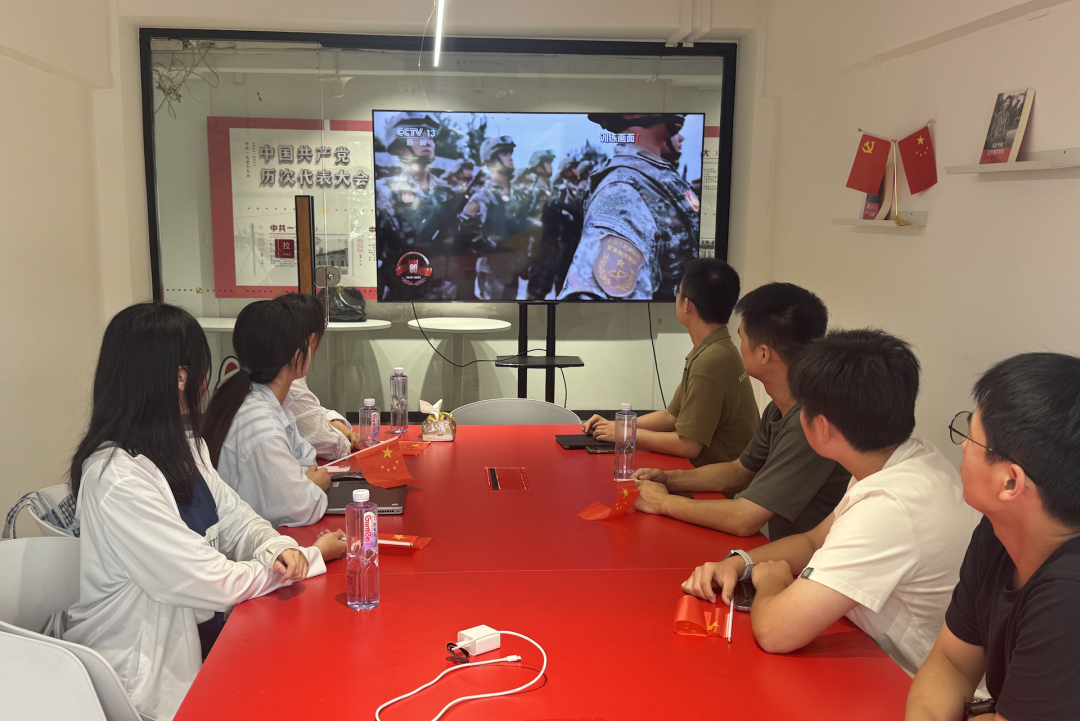 今天上午,我们学工部党支部党员教师代表与留校学生代表一起,在“一站式”学生社区理享家共同观看了纪念中国人民抗日战争暨世界反法西斯战争胜利80周年大会和阅兵式。人民军队如钢铁洪流接受检阅,钢多气盈,雄浑铿锵,势不可挡;在场师生屏息凝神,共同接受了一场荡气回肠的洗礼,胸中满溢着炽热的爱国情怀与磅礴的民族自豪感。