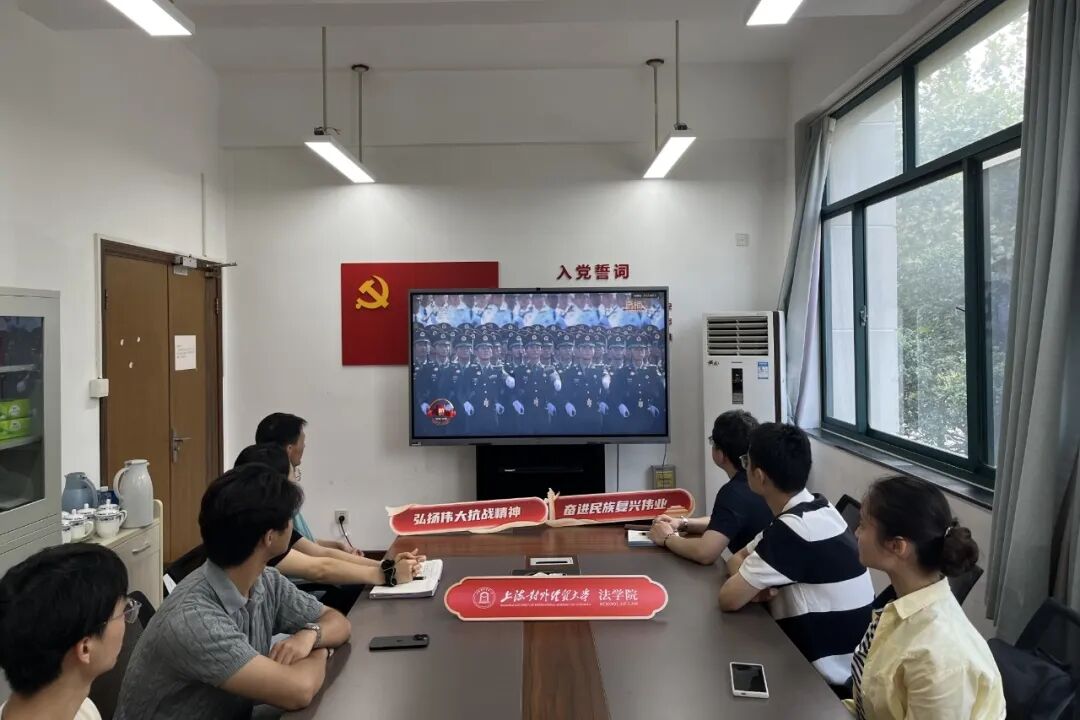 上经贸大师生在长宁校区、松江校区、松江印象城党群服务中心、“一站式”学生社区理享家或家中以各种形式观看雄壮的阅兵式,聆听习近平总书记的重要讲话,与全国人民一起,共同纪念这一场伟大的胜利。