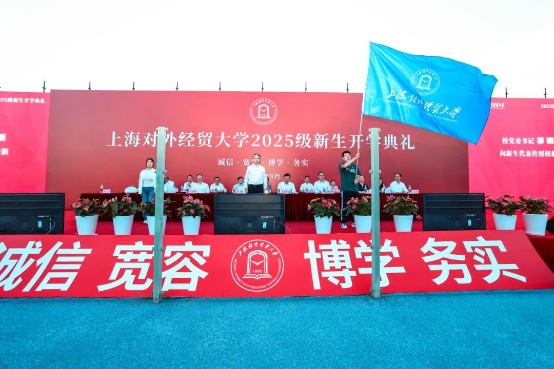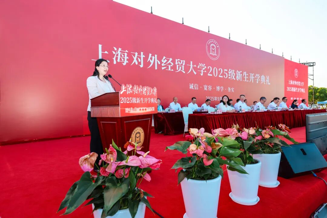 金风送爽,秋色如诗。9月16日下午,上海对外经贸大学2025级新生开学典礼在松江校区体育场隆重举行。校党委书记祁明,校长汪荣明,校党委副书记、纪委书记章益国,校党委副书记、副校长沈艺,副校长徐永林以及学校党政部门、各学院负责人和全体2025级新生、家长代表、校友代表出席典礼,广大师生、家长及亲友通过网络平台同步在线观礼。典礼由沈艺主持。