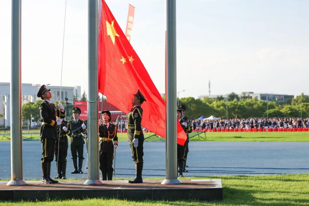 旌旗招展、今朝发轫,引领逐梦征途。祁明从2024级博士研究生高嘉欣手中接过校旗,郑重传授给2025级博士研究生陈高昂。台下11个学院院旗也随主席台上的校旗一同舞动,校旗飘扬,使命交棒,迎接的是青春芳华,飘扬的是时代荣光。