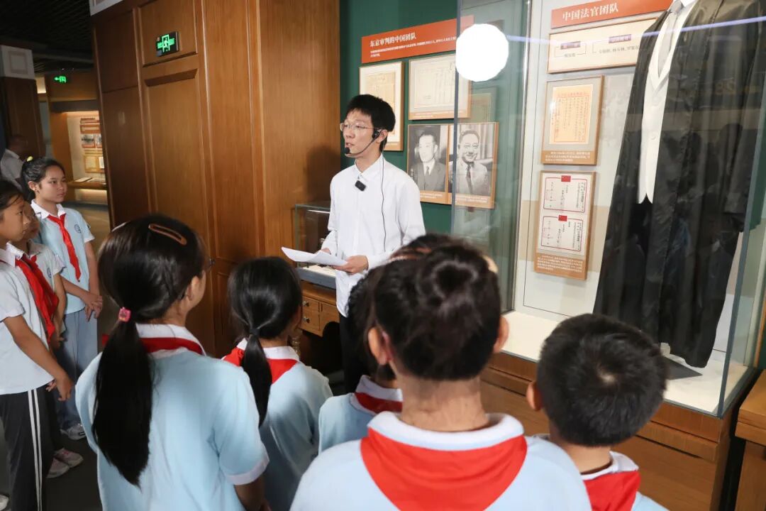第三个环节由上海对外经贸大学国际经贸学院2023级学生杨雨衡主讲。他结合在学校大师剧《裘劭恒》中扮演中国大法官梅汝璈的经历,以及对学校先贤裘劭恒老院长在东京审判中搜集罪证、促成溥仪做证等事迹的讲解,指出伟大抗战精神不仅体现在战场上的英勇无畏,也体现在和平年代为国家尊严、民族利益挺身而出的担当。他表示作为新时代青年,要传承“天下兴亡,匹夫有责”的爱国情怀,锤炼过硬本领,在世界舞台上讲好中国故事、维护国家利益,用实际行动践行“强国有我、复兴有我”的誓言。