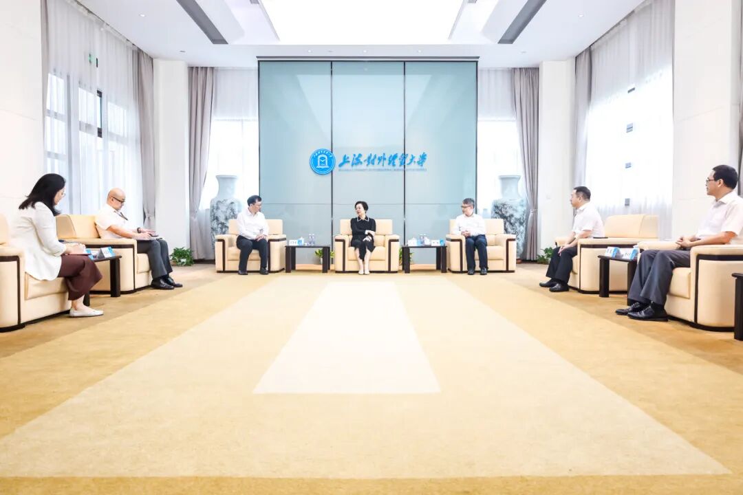 在交流座谈中,江帆对学校65年来的办学成果与特色给予高度评价。她指出,学校在对外经贸人才培养、高水平决策咨询、服务高水平对外开放等领域成效显著,为上海乃至全国开放型经济发展作出了积极贡献。针对学校未来发展,她强调,学校要深入落实立德树人根本任务,在推进教育综合改革、编制“十五五”规划过程中,进一步擦亮“外”“经”“贸”特色品牌。坚持需求导向,突出“重服务、强贡献”理念,聚焦国家急需紧缺领域,持续优化办学定位与发展路径,加快建设特色鲜明的高水平财经类大学,更好地服务国家对外开放战略与上海城市发展需求。