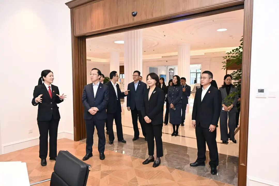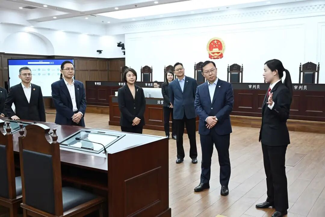 座谈会前,汪荣明一行参观了上海金融法院诉讼服务中心、数字法庭及文化展厅等。大家通过沉浸式体验,深入了解了金融纠纷多元化解机制、数字法院建设成果及法院文化传承等金融司法“上海模式”的创新实践。
