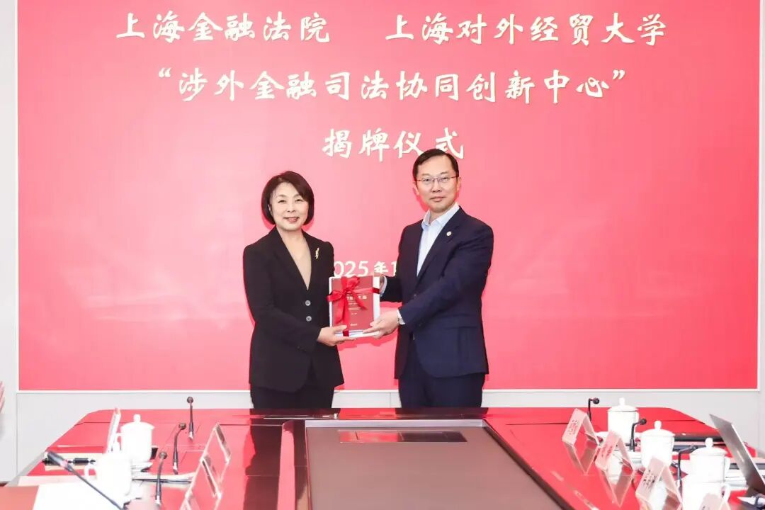 12月12日上午,上海对外经贸大学与上海金融法院战略签约暨“涉外金融司法协同创新中心”揭牌仪式在上海金融法院举行。上海对外经贸大学校长汪荣明、副校长徐永林,上海金融法院党组书记、院长赵红,党组成员、政治部主任田骏,以及双方相关单位和部门负责人出席活动。仪式及会议由田骏主持。