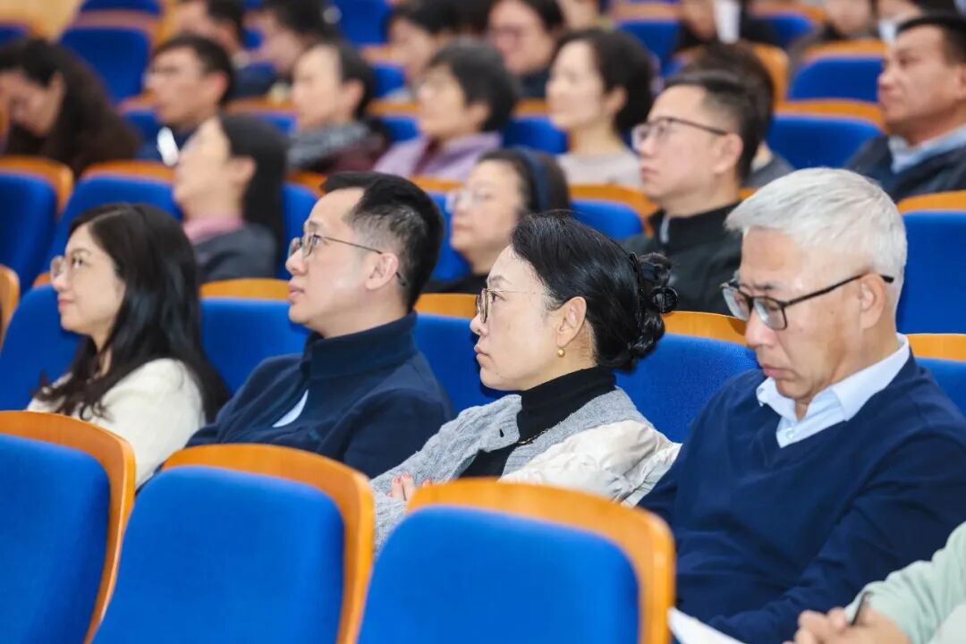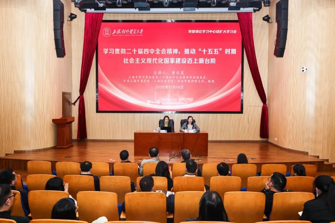 为进一步深入学习党的二十届四中全会精神,帮助广大干部教师更加深刻认识四中全会的重大成果和重要意义,11月18日下午,学校在松江校区图书馆思源报告厅举行党委理论学习中心组学习(扩大)会,邀请上海市委讲师团成员、中共上海市委党校经济学教研部主任唐珏岚教授作主题为“学习贯彻党的二十届四中全会精神,推动‘十五五’时期社会主义现代化国家建设迈上新台阶”的专题辅导报告。学校党委理论学习中心组成员、中层领导人员、教工支部书记、系(专业)主任、各民主党派、统战团体负责人、第九期青年骨干教师培训班学员参加报告会。会议由校党委副书记、副校长沈艺主持。