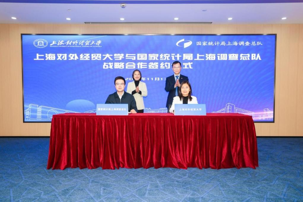 11月13日上午,上海对外经贸大学与国家统计局上海调查总队战略合作签约仪式暨总队系统2025年青年干部综合能力提升培训班在我校长宁校区举行。上海对外经贸大学校长汪荣明,副校长姜秀珍,国家统计局上海调查总队党组书记、总队长金红,党组成员、副总队长何愉,二级巡视员胡勤英,以及双方相关单位及部门负责人、青年干部综合能力提升培训班全体学员参加仪式,仪式由姜秀珍主持。